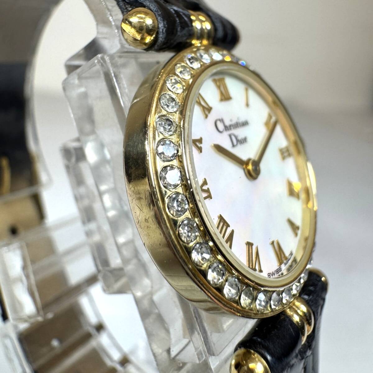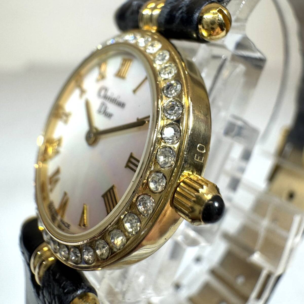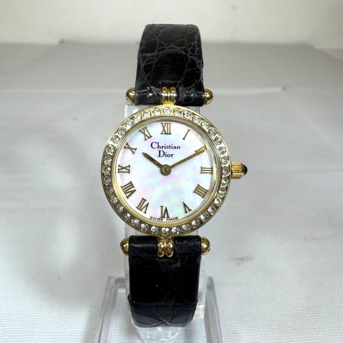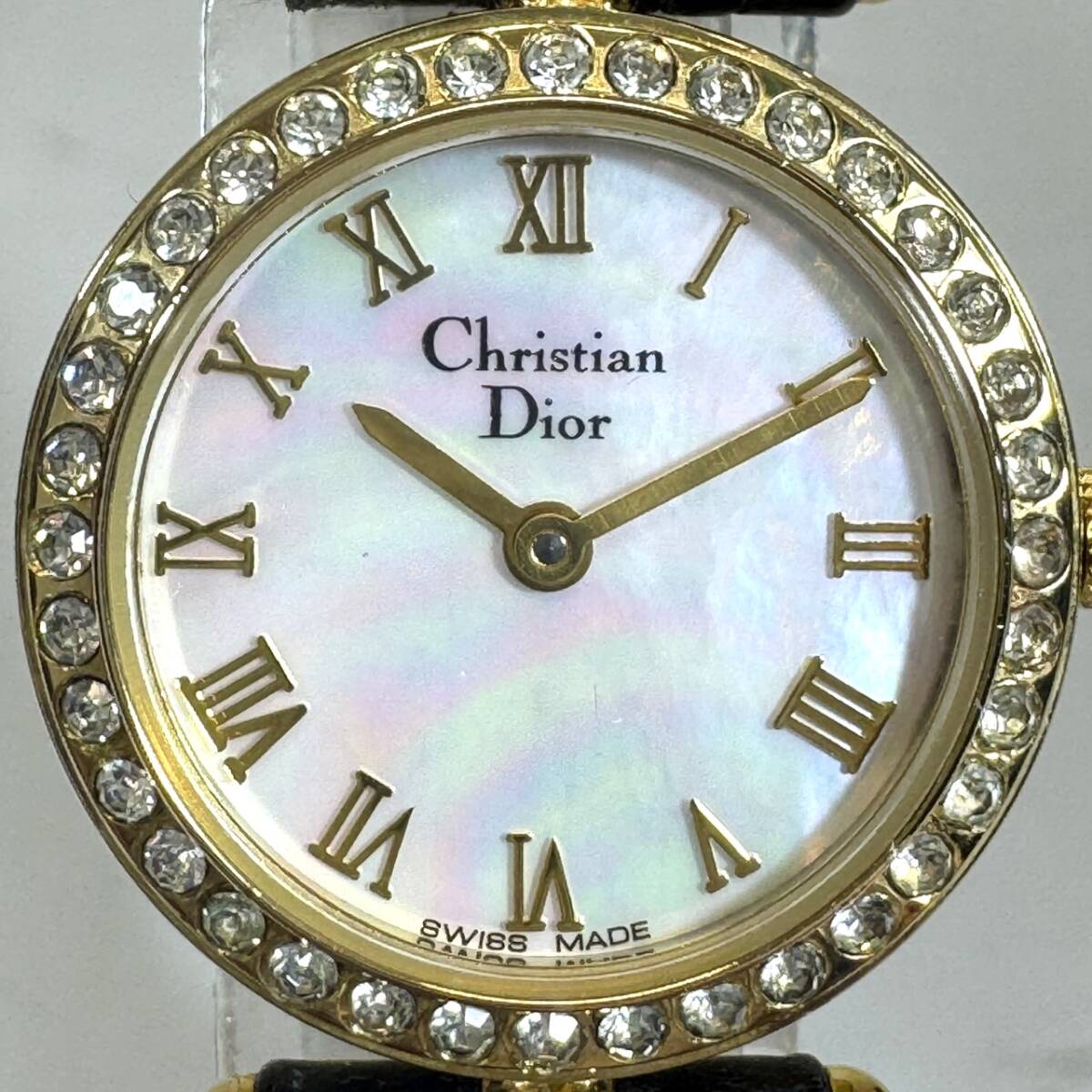 【MH-0976】中古品 Christian Dior クリスチャンディオール 3053 レディース 腕時計 クオーツ シェル文字盤 石取れなし 現状稼働品