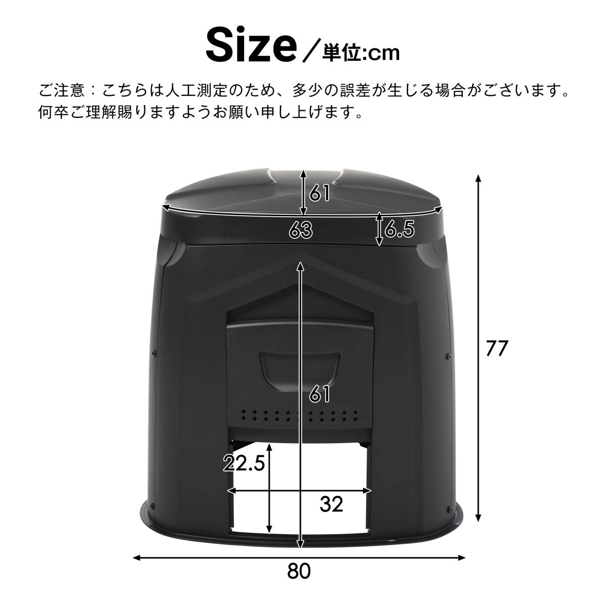 【紫外線OK!発酵が進む黒いコンポスト】丈夫なPP素材を使用し、紫外線に強い加工で劣化を防止。製品本体を黒色にすることで、内部の温度が上がりやすくなり、発酵菌の働きを促進します。
