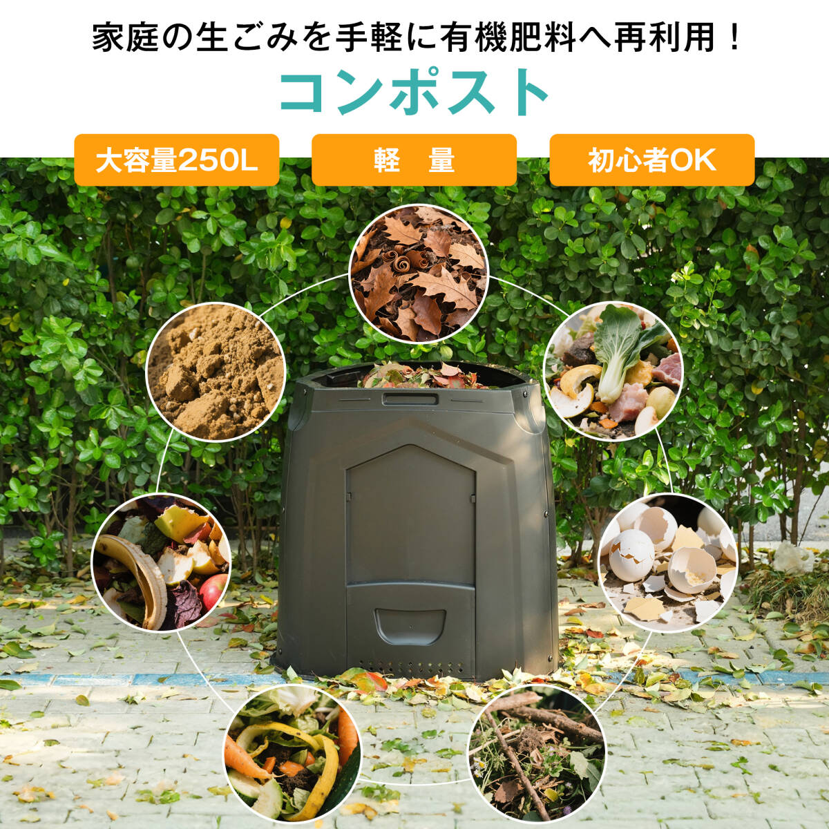 コンポスト屋外 250L 大型 家庭用 大容量 堆肥製造器 家庭菜園 堆肥コンポスター 有機肥料 園芸シート付 家庭菜園 おしゃれ 生ごみ処理