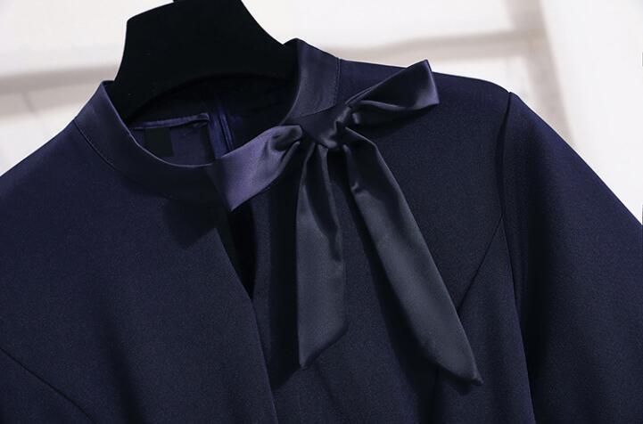 新入荷上質事務服 ワンピース レディース 制服 仕事服 大きいサイズ 通勤 オフィス 受付 接客 冠婚葬祭 セレモニー ネイビーXL