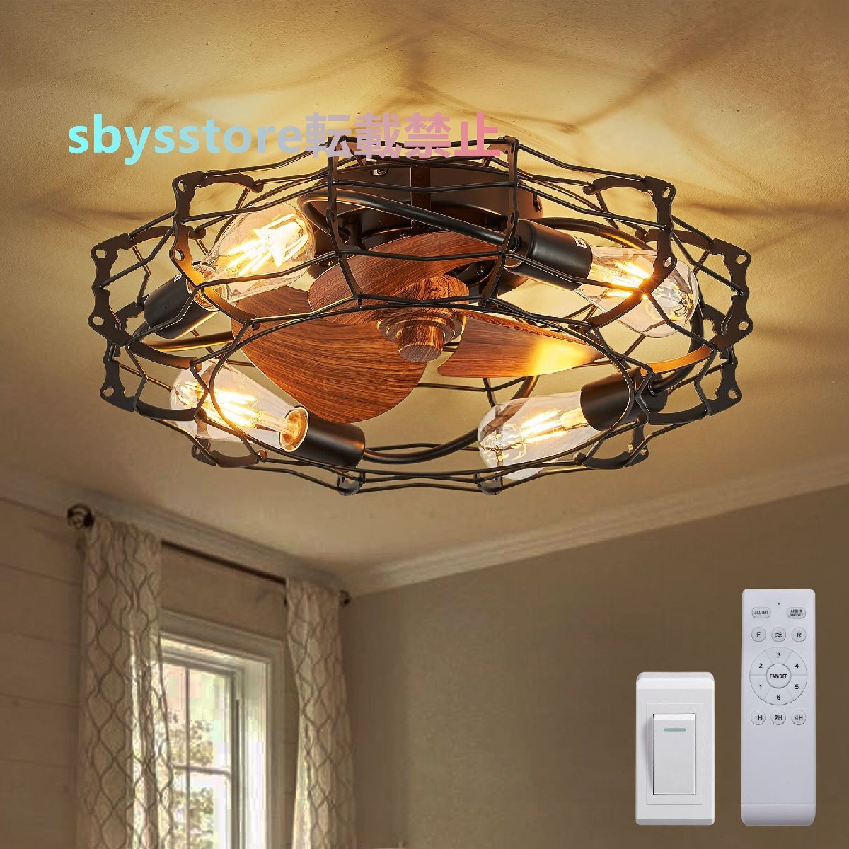 シーリングファンライト インダストリアル風 寝室ダイニング用 ローシーリング対応シンプルリビングファンライト