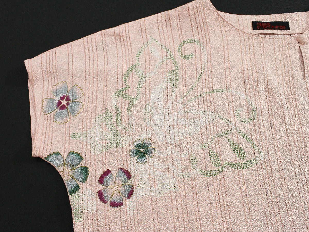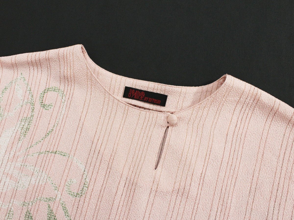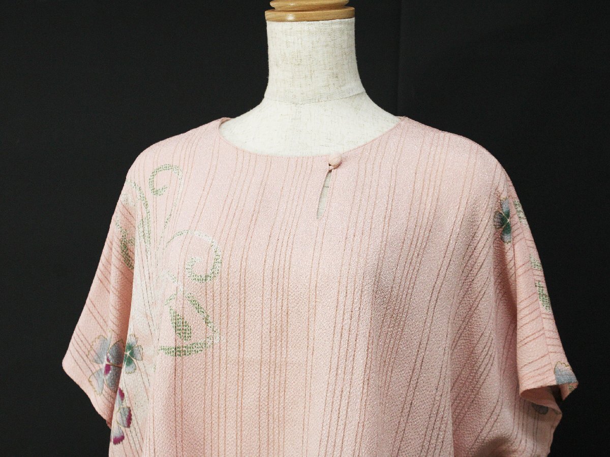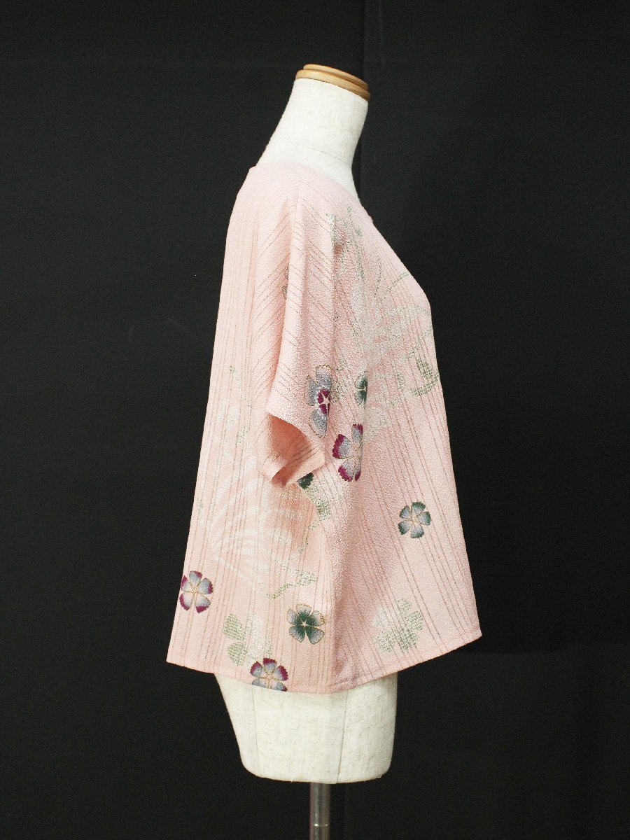 美品 詩仙堂 洗える絽ちりめん織り花柄半袖ブラウスプルオーバー ピンク系 rl783