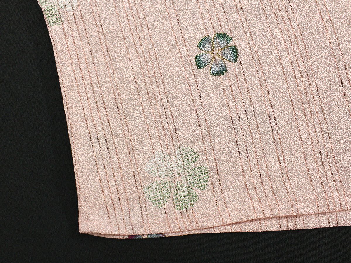 さらりとした手触り、線部分に透け感のある薄手絽ちりめん織り生地で仕立てられています。