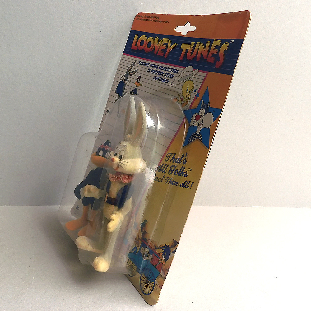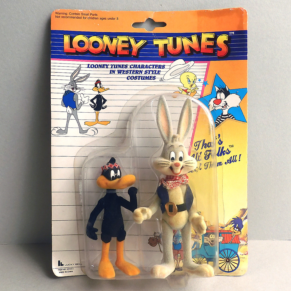 ルーニー・テューンズのダフィー・ダックとバッグス・バニーのフロッキー アクションフィギュア。