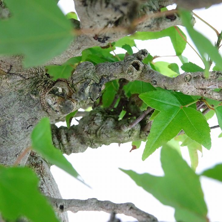 | ■植物ですので撮影時期や季節によって剪定などの手入れにより写真から変化がございます。撮影日をご確認のうえ、ご注文ください。 ■春頃~7月上旬。葉すかし、葉刈りをおこないます。目的として全体的な枝や葉の量を減らし風通しを良くし、幹にしっかりと日光を当てるため。 【楓盆栽】 春先に芽吹き、夏頃には新緑、秋頃には紅葉、冬は寒樹姿と四季を通して楽しめる植物です。 |