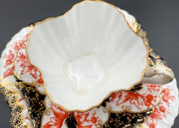 装飾は、赤絵と黒の地に繊細な金彩が施された豪華なイマリスタイル。