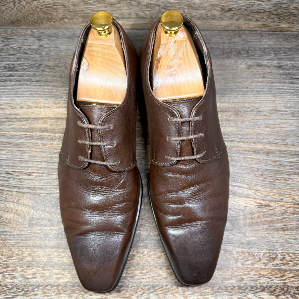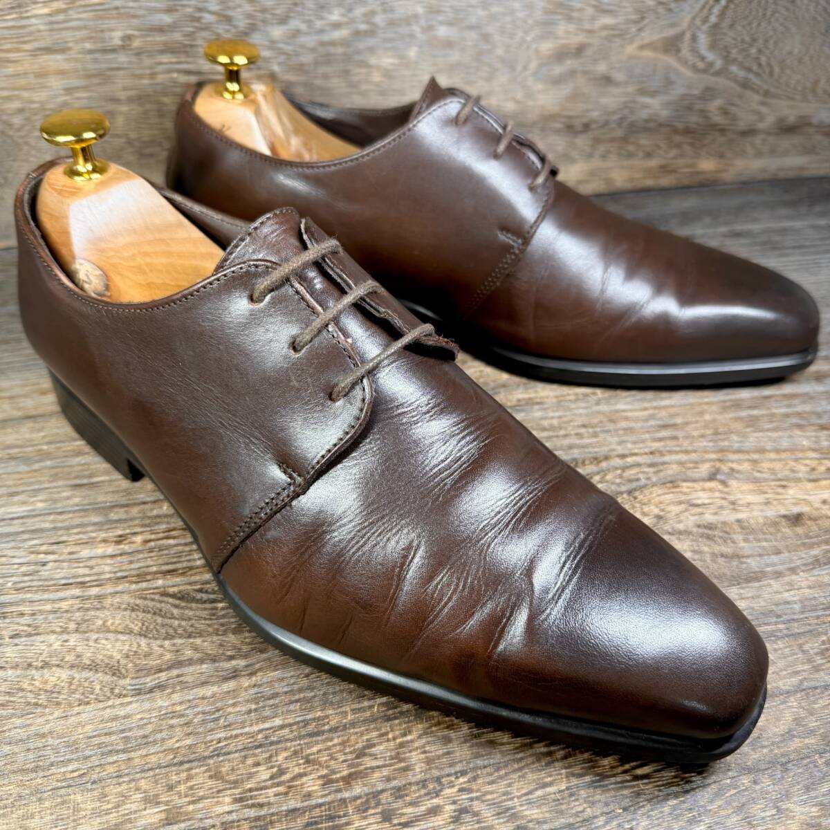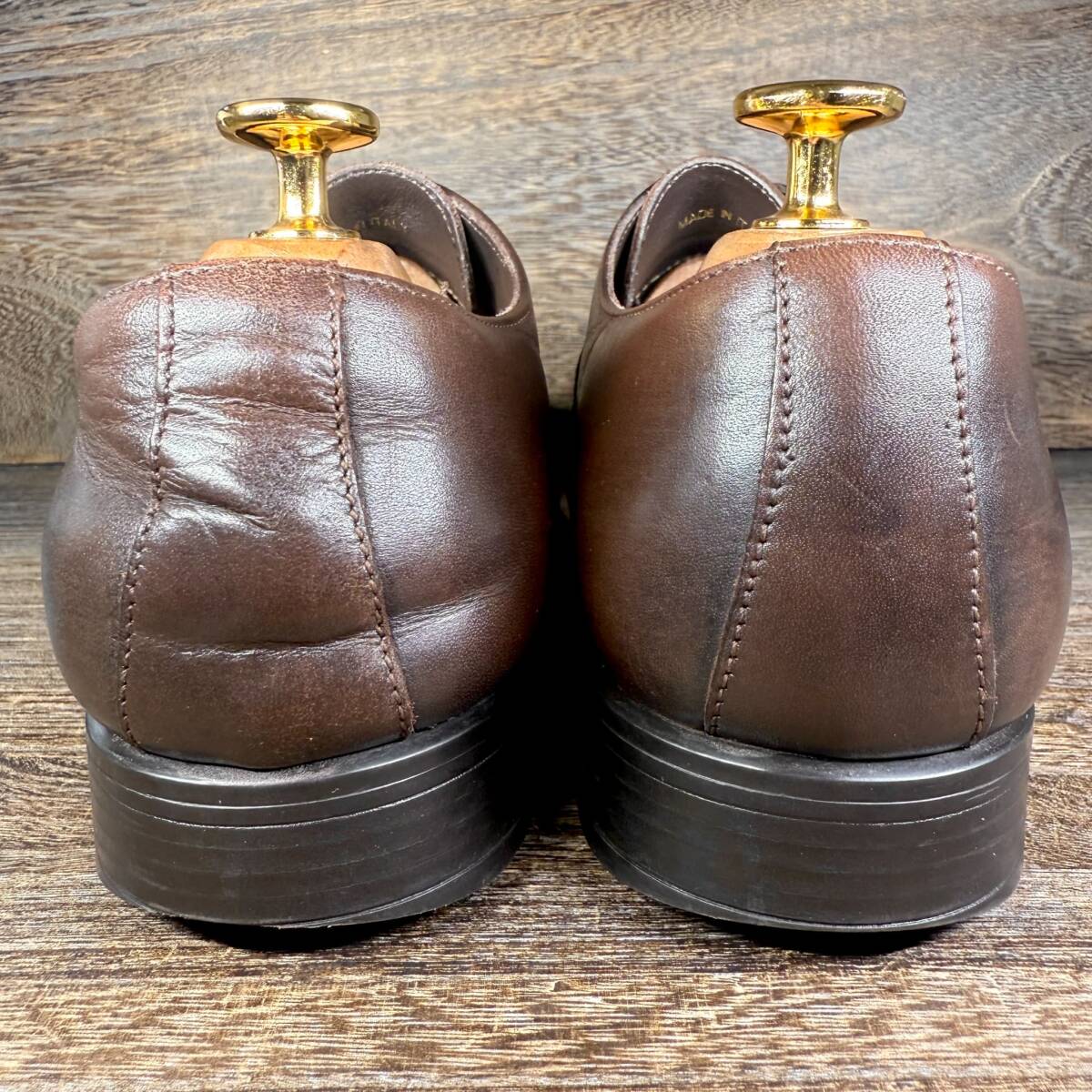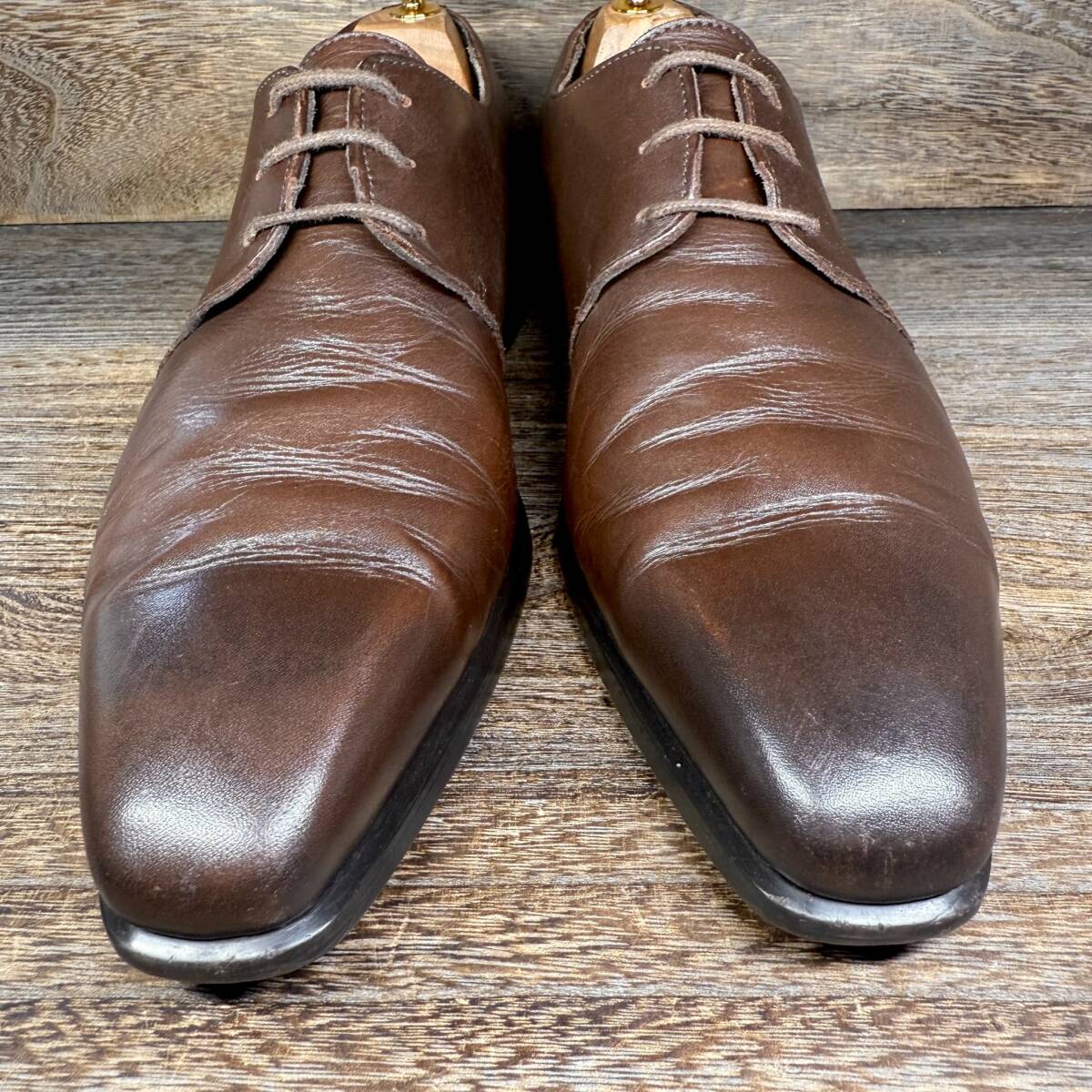 ※商品ご到着後、すぐに履いて頂ける様シューケア磨き等をかけ配送させて頂いております。又、画像のシューツリー、ブラシ、ワックス等は撮影用の為、付属しません。
