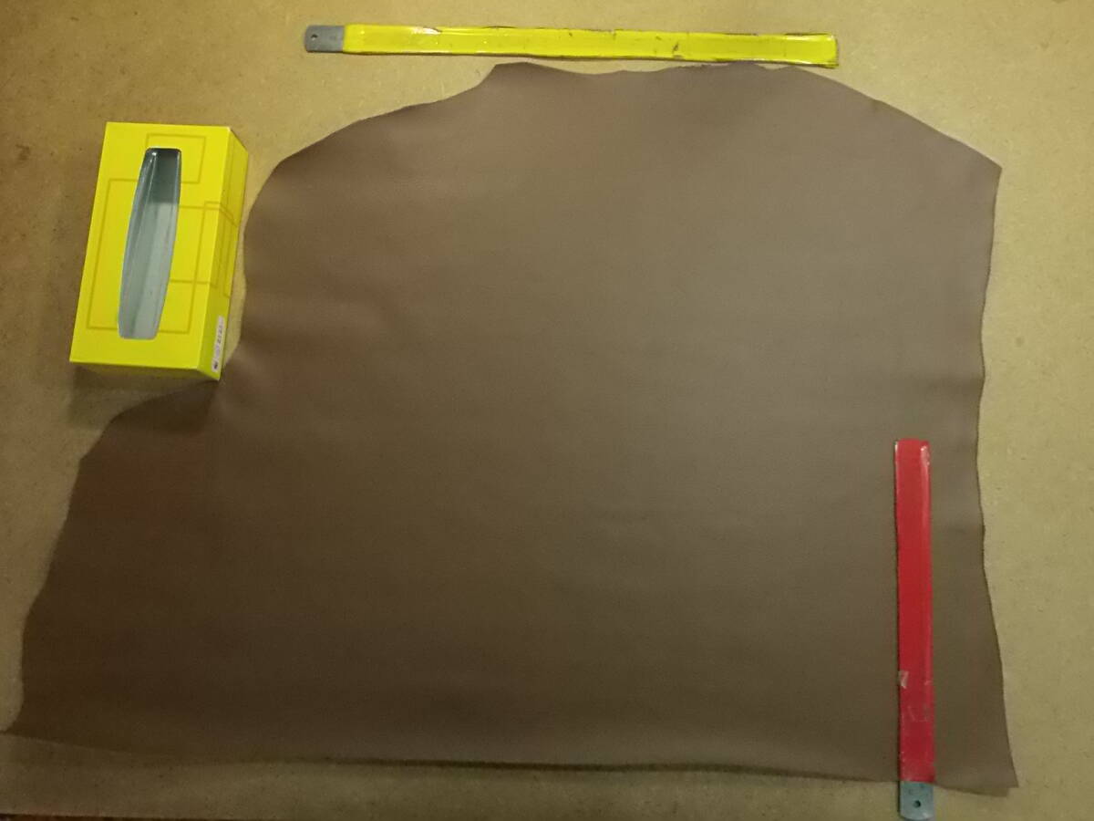 ◆ 裁断された牛革はぎれ     シュリンク       厚さ 1.3ミリ前後    ソフト      おおむね良好です。       ハサミ等で簡単に裁断可能です、又デニムの裾上げができる家庭用ミシンで縫えているみたいです。     色止め防水加工済み     なるべく良い所を選んでいますが多少の天然ダメージ等はご了承下さい、はぎれの革自体はタンナーで最近製造された物で状態は良好です。又折れジワ、重なり跡等は革を直接手もみすると多少良くなるのでお試しください。