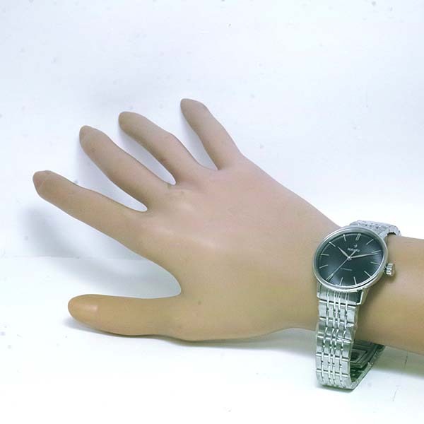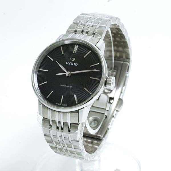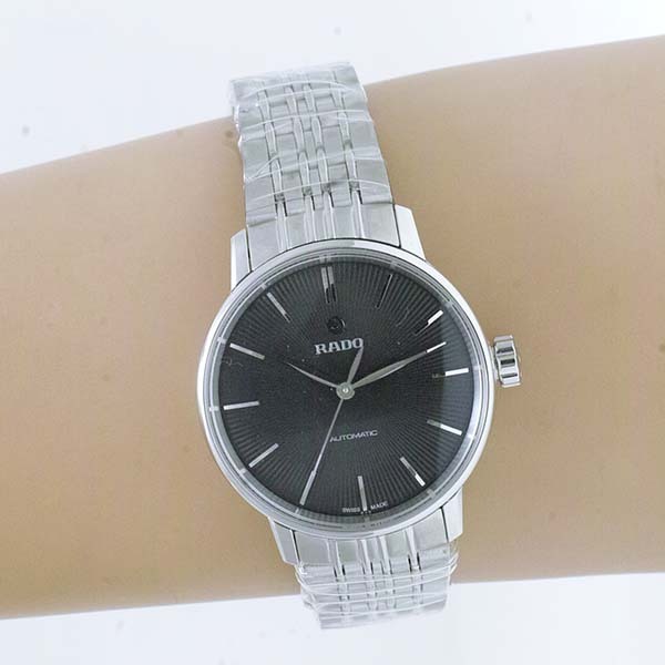 黒文字盤がクールなラドーの自動巻レディースウォッチ、クポール クラシック オートマティック。