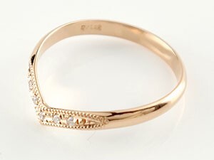 結婚指輪 レディースダイヤモンド リング。人気で希少価値の高いダイヤモンド最高級品質のブリリアントカット シンプルで 送料無料V字 ダイヤモンド リング ピンキーリング 婚約指輪 エンゲージリング ピンクゴールドk18 ミル打ちひとつひとつ手作り加工ピンキーリング ナチュラルリング。アクセントとしてダイヤモンドを留めて高級感を出しています。ダイヤモンドは肉眼で見える傷やくもりがなく透明感があって綺麗なものを留めてあります。飽きのこないおシャレなミル打ちデザインで年齢をとわずに身に付けられます。サイズ直しは1-16号までサービス。小指指輪としても人気のアイテム。文字入れは有料ですが加工可能です