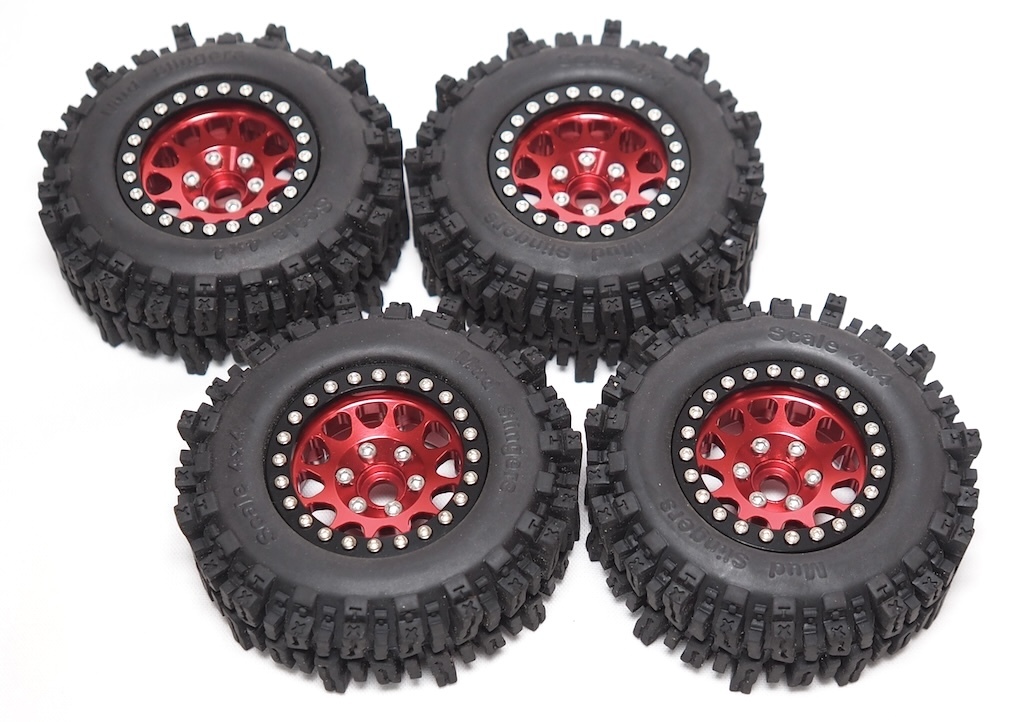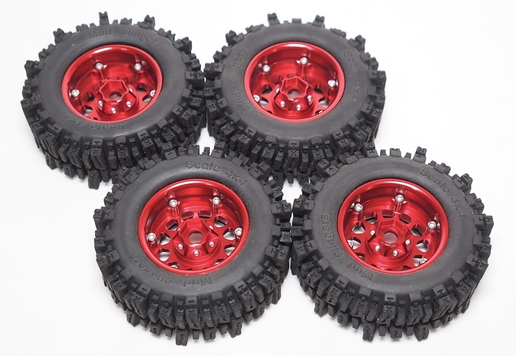 【ゆうパック60/同梱不可】大幅値下げ!! マッドスリンガー1.9インチ RCクローラータイヤ&アルミビードロックホイール4本