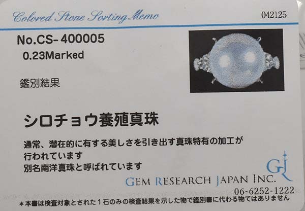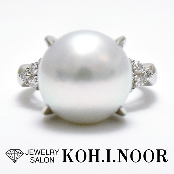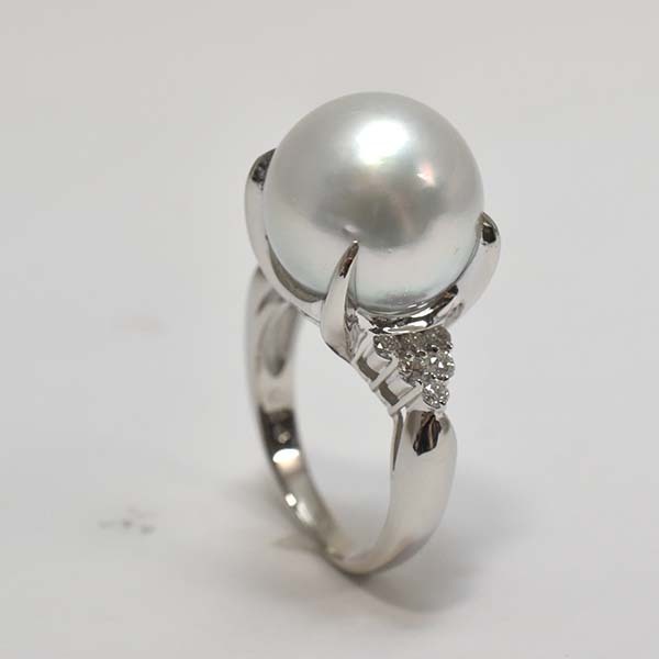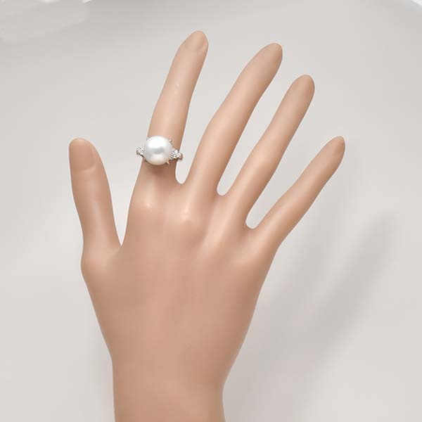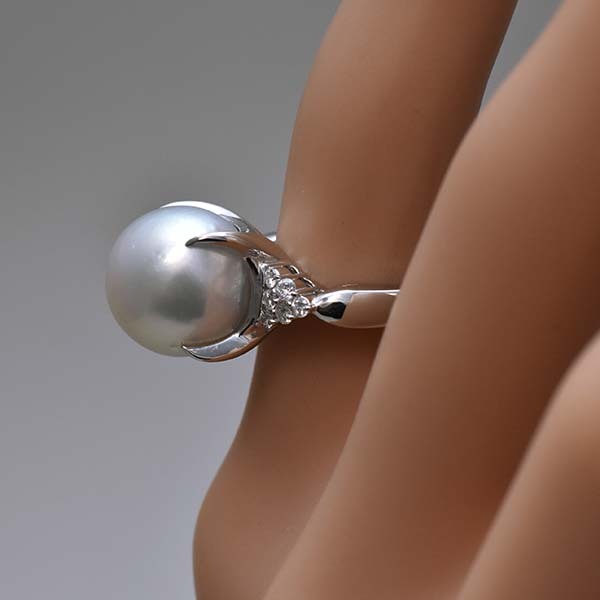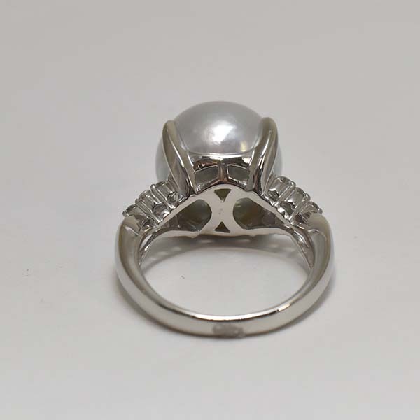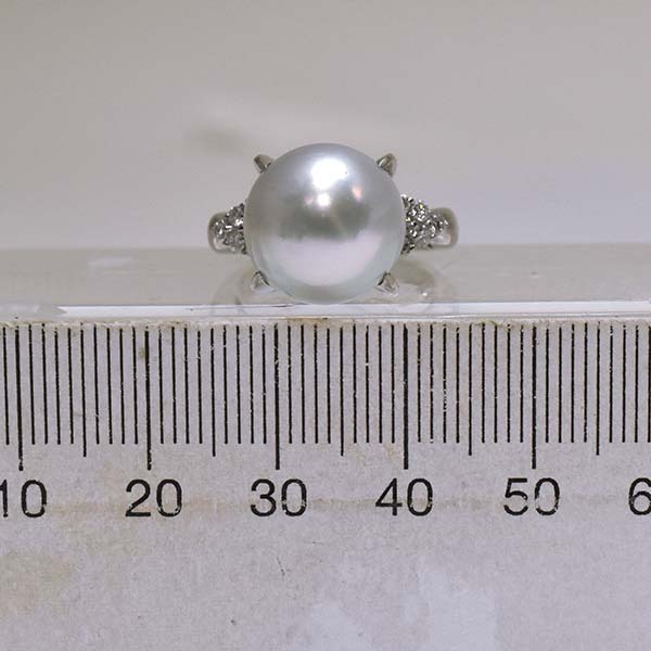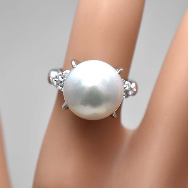 南洋パールにダイヤを添えたプラチナ製のファッションリング。