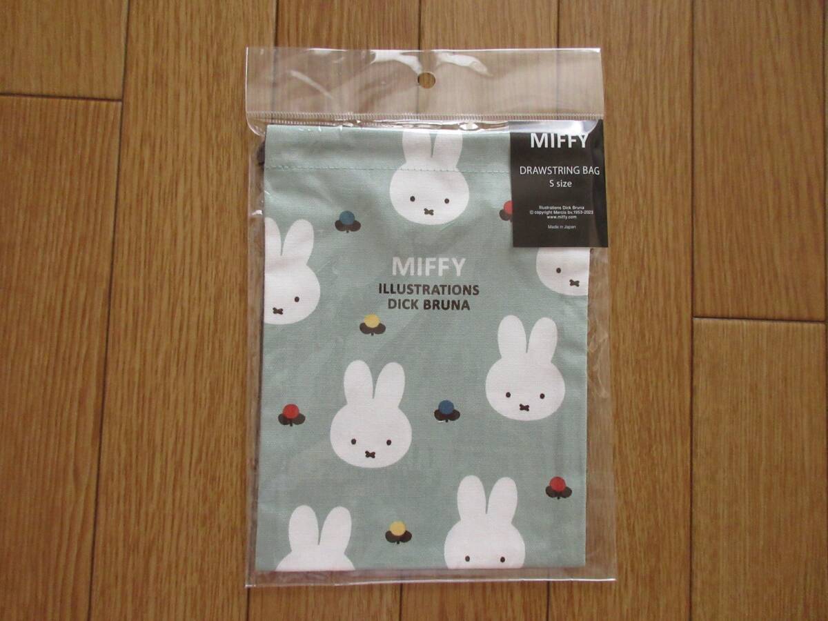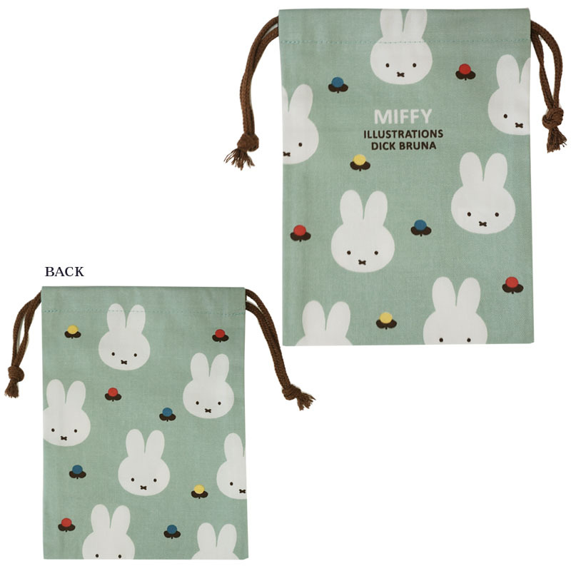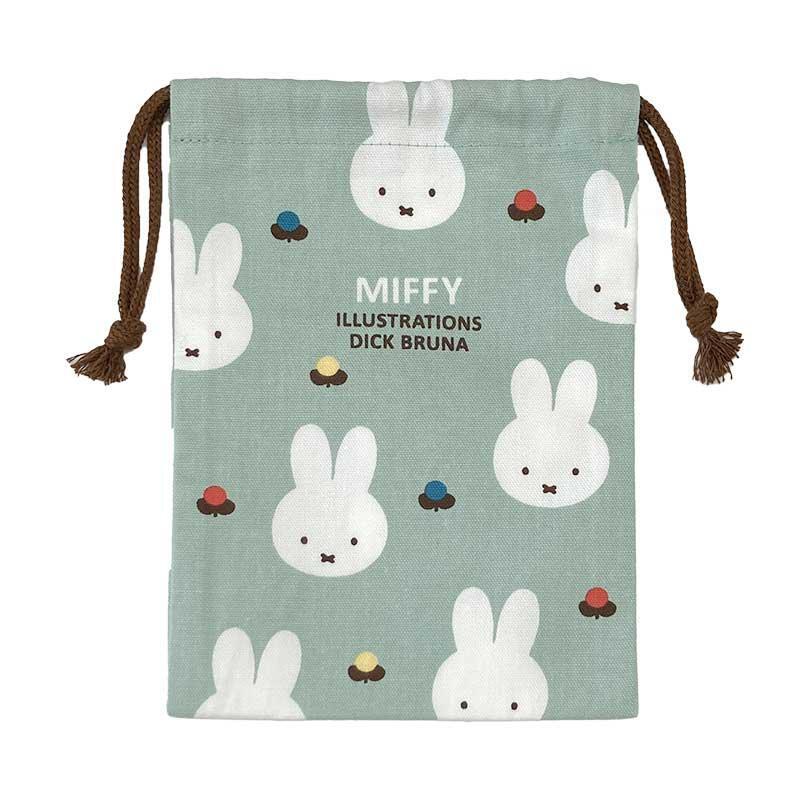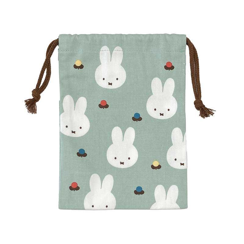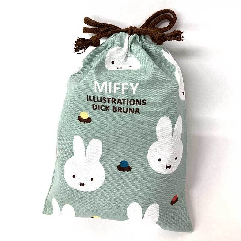 miffy ミッフィー 巾着 Sサイズ (ミッフィーフェイス&フラワー) 巾着袋 小物入れ ディック・ブルーナ うさぎ くすみグリーン
