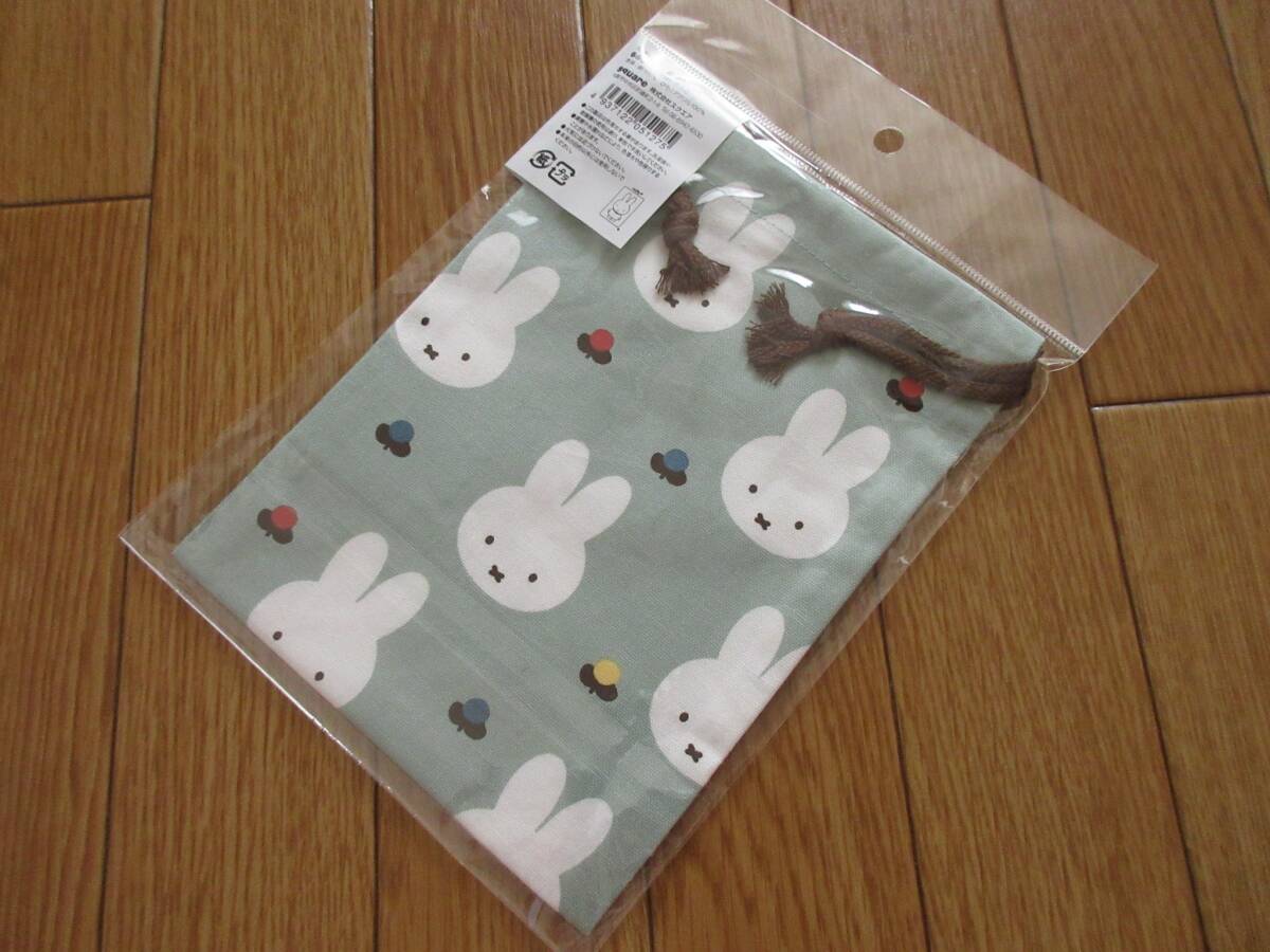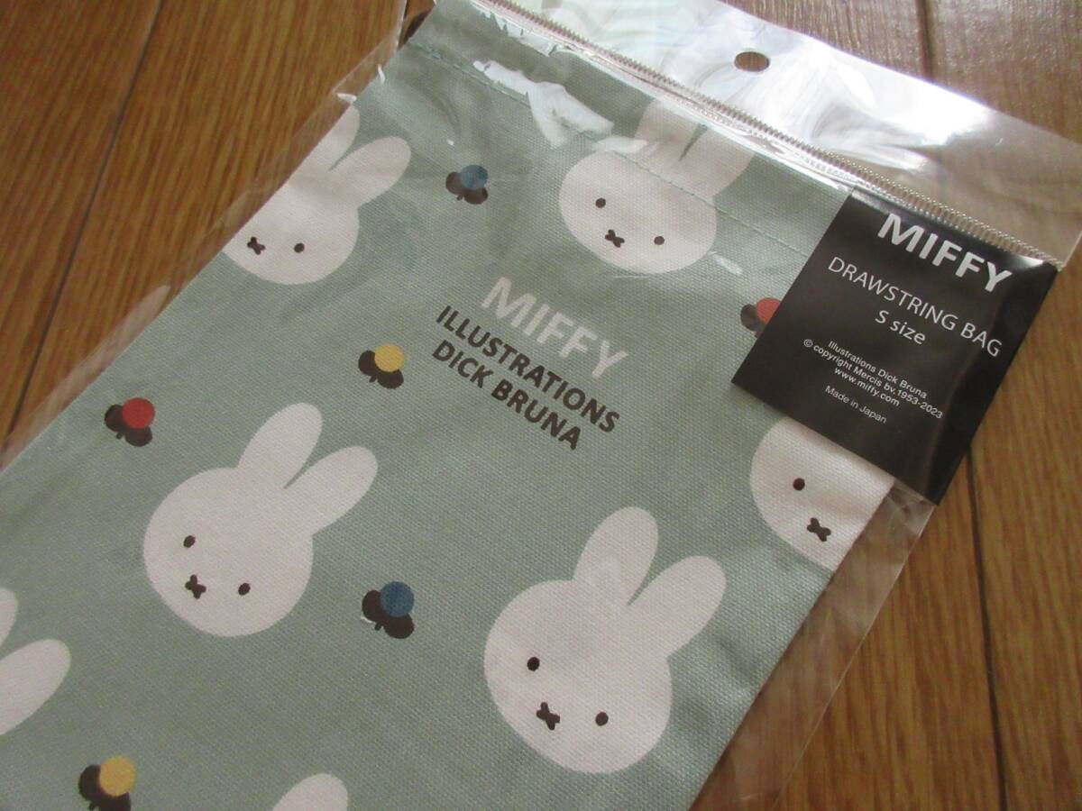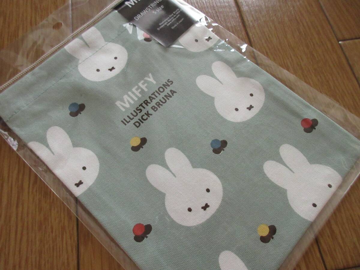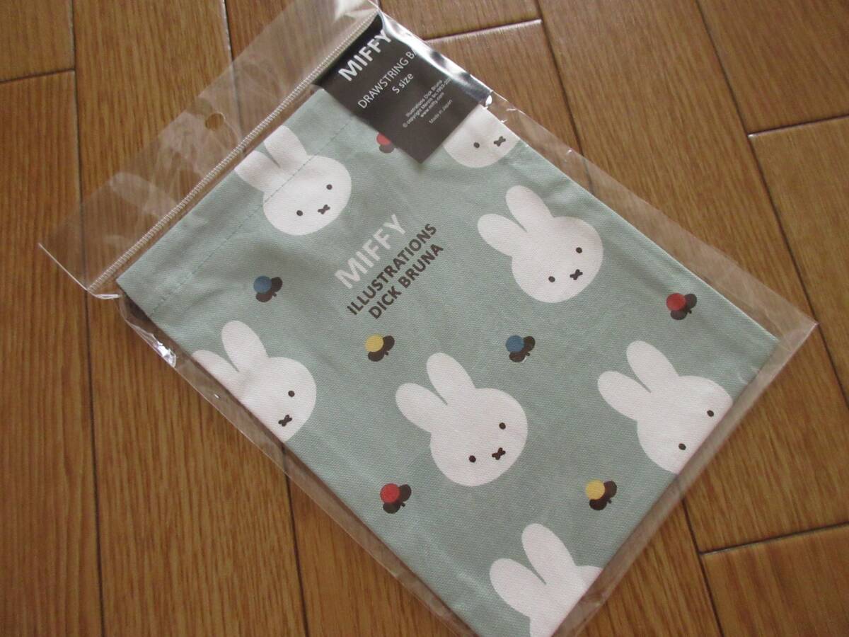 miffy ミッフィー 巾着 Sサイズ (ミッフィーフェイス&フラワー) 巾着袋 小物入れ ディック・ブルーナ うさぎ くすみグリーン
