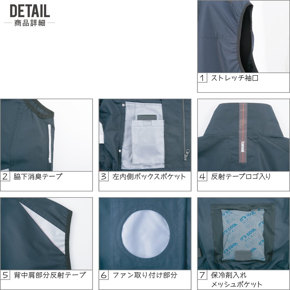 特長:背中肩部分反射テープ/脇下消臭テープ/ストレッチ袖口