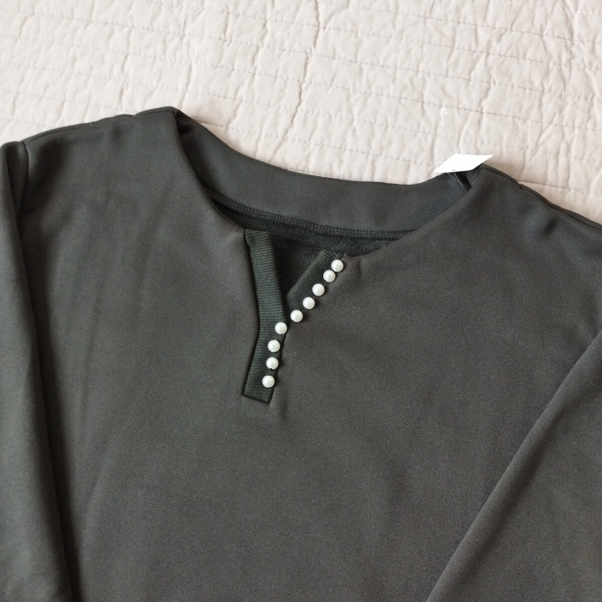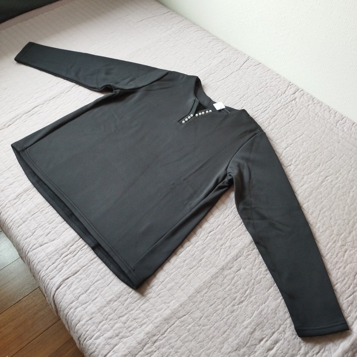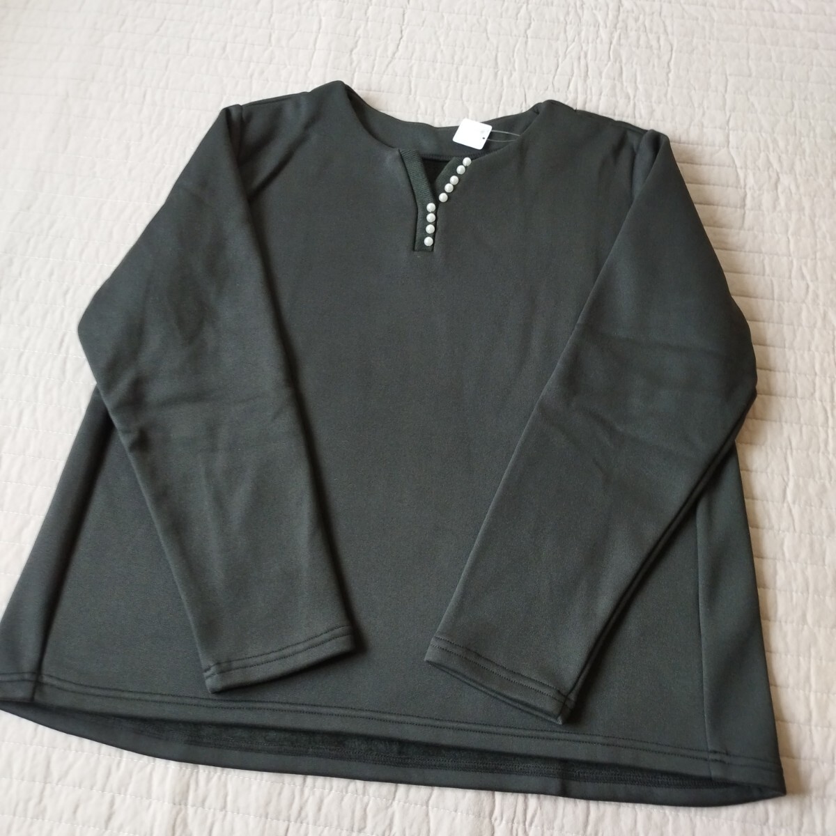 1点のみ 未使用 パール調ボタン 暖か 裏起毛 プルオーバー 黒 カットソー トレーナー 大きい LL 洗濯機ok サイズ違いも 匿名 送料無料