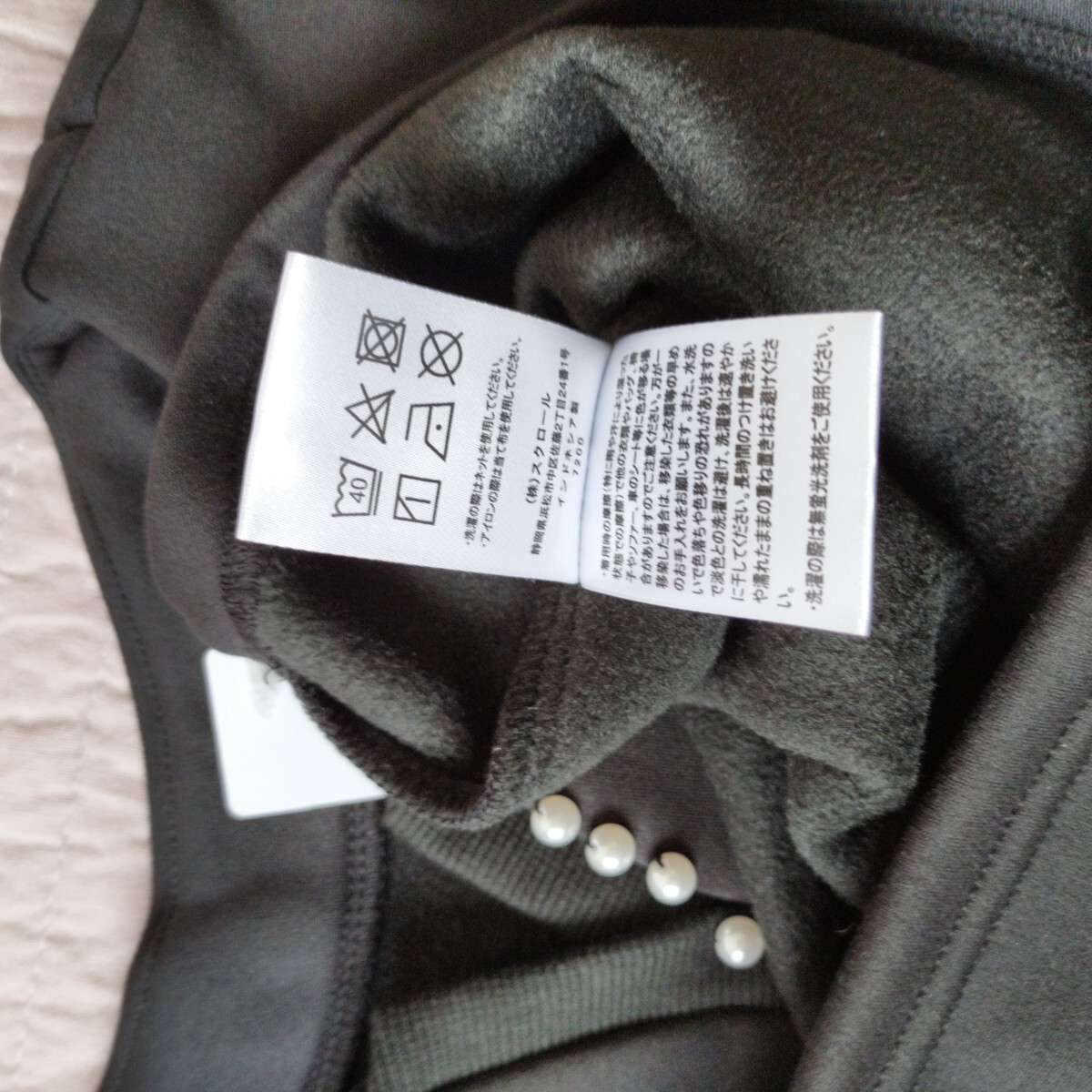 【素材】表ポリエステル95ポリウレタン5、裏ポリエステル100、別布ポリエステル65綿30ポリウレタン5(洗濯機洗いできます)・・・