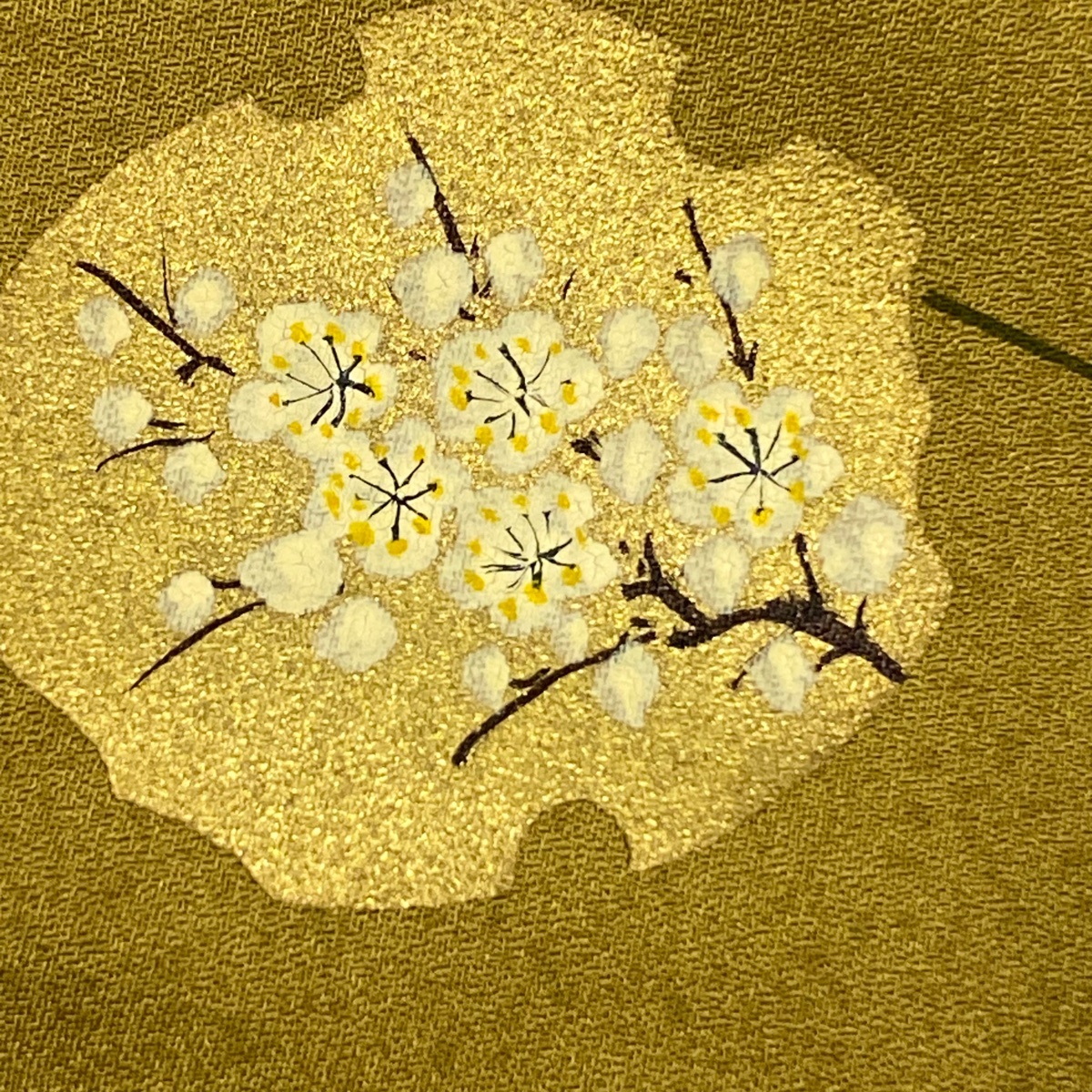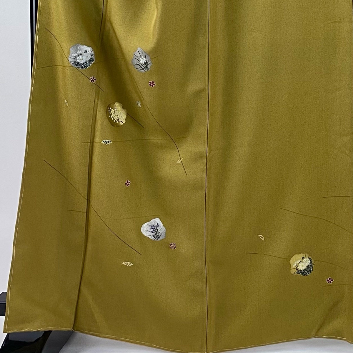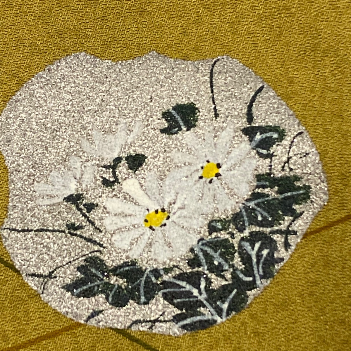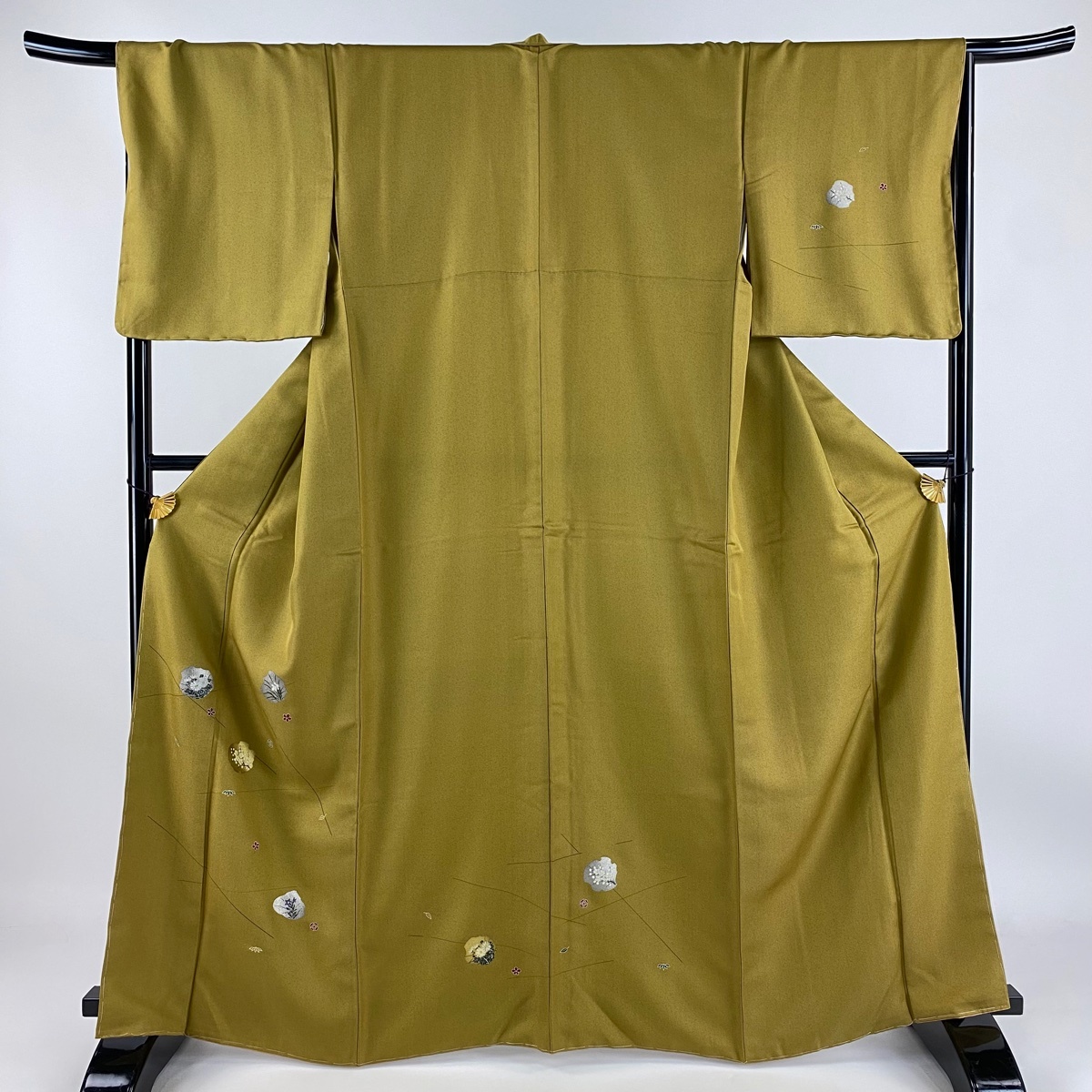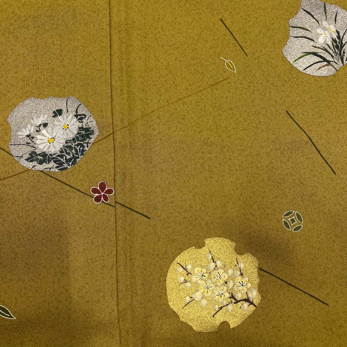| 付下げ 秀品 雪輪 草花 金銀彩 山吹茶色 袷 身丈164.5 裄丈68 L 正絹 【中古】 |
