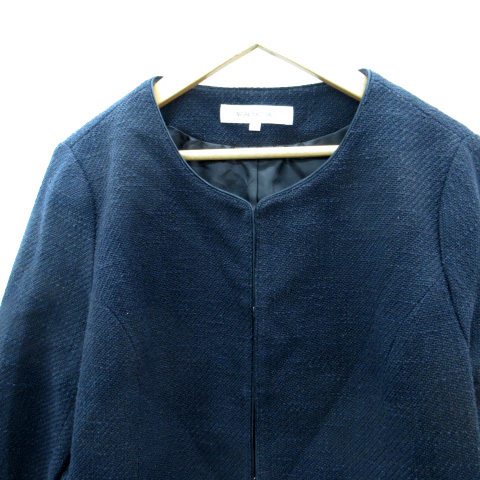ナチュラルビューティーベーシック NATURAL BEAUTY BASIC ノーカラージャケット ミドル丈 L 紺 ネイビー /SM6 レディース