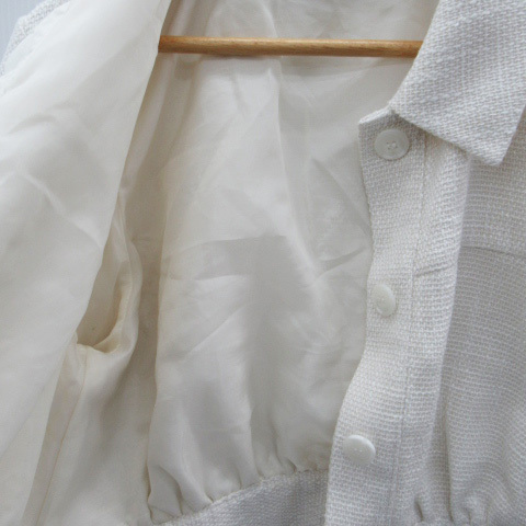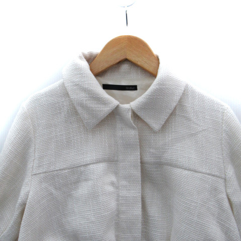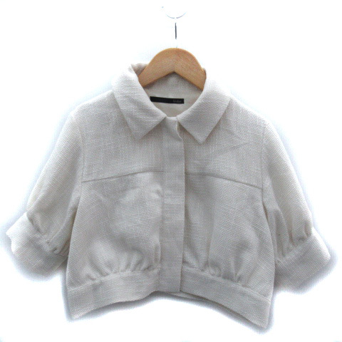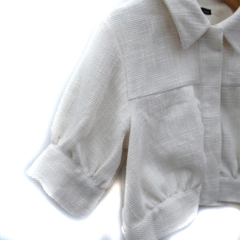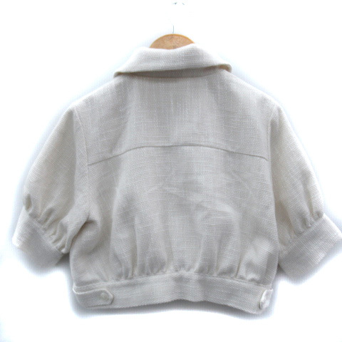 ヘザー Heather ステンカラージャケット ショート丈 五分袖 ツイード F 白 ホワイト /SM1 レディース