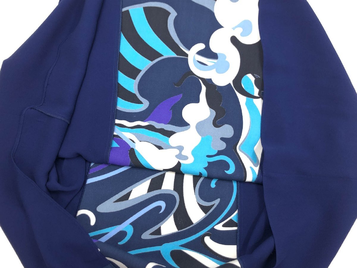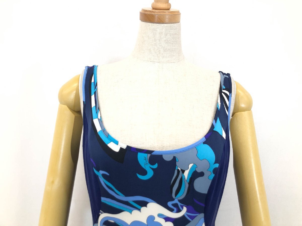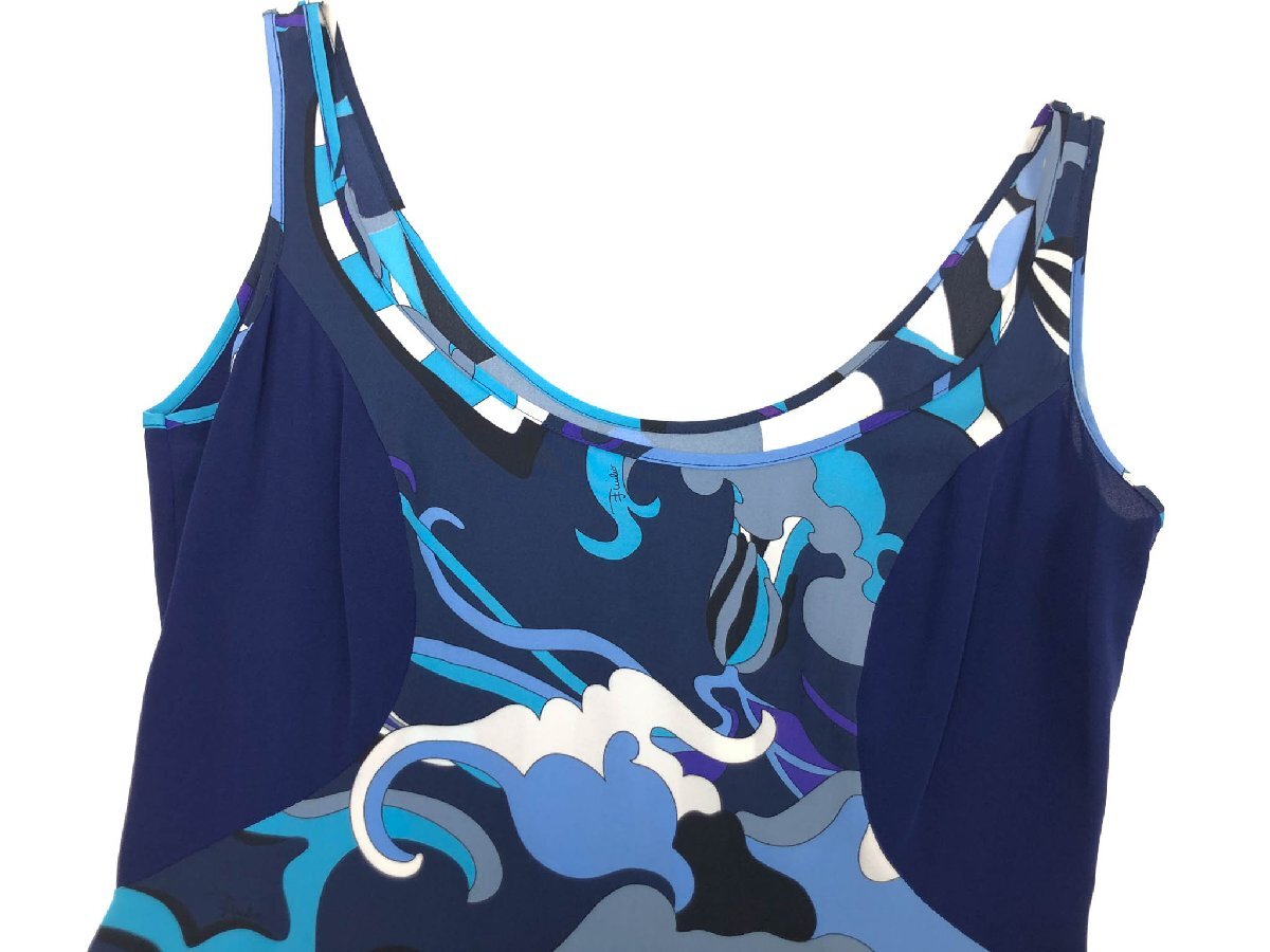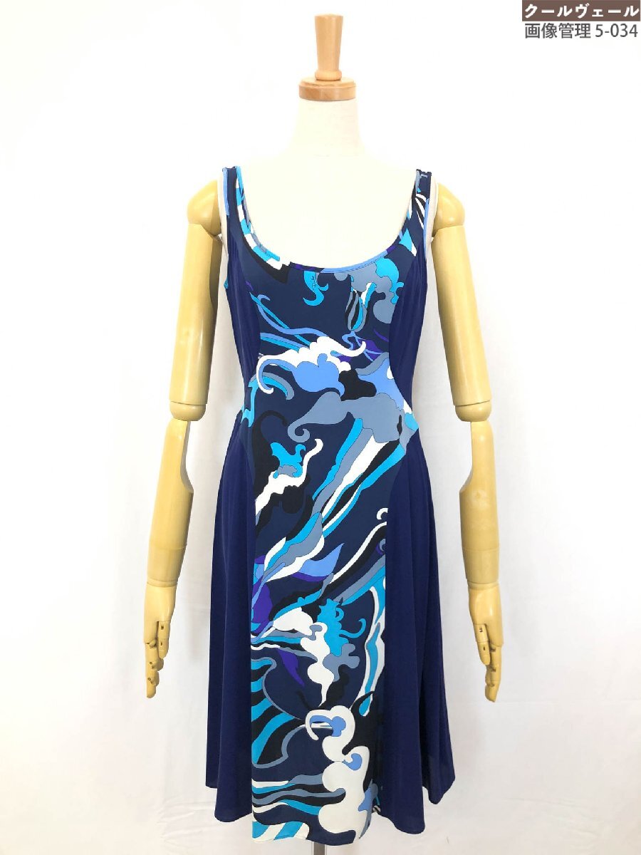 極美品【EMILIO PUCCI エミリオプッチ】61RG08 シルク97% プッチ柄 ノースリーブワンピース (レディース)38 ネイビー系 伊製◇17LO3800◇