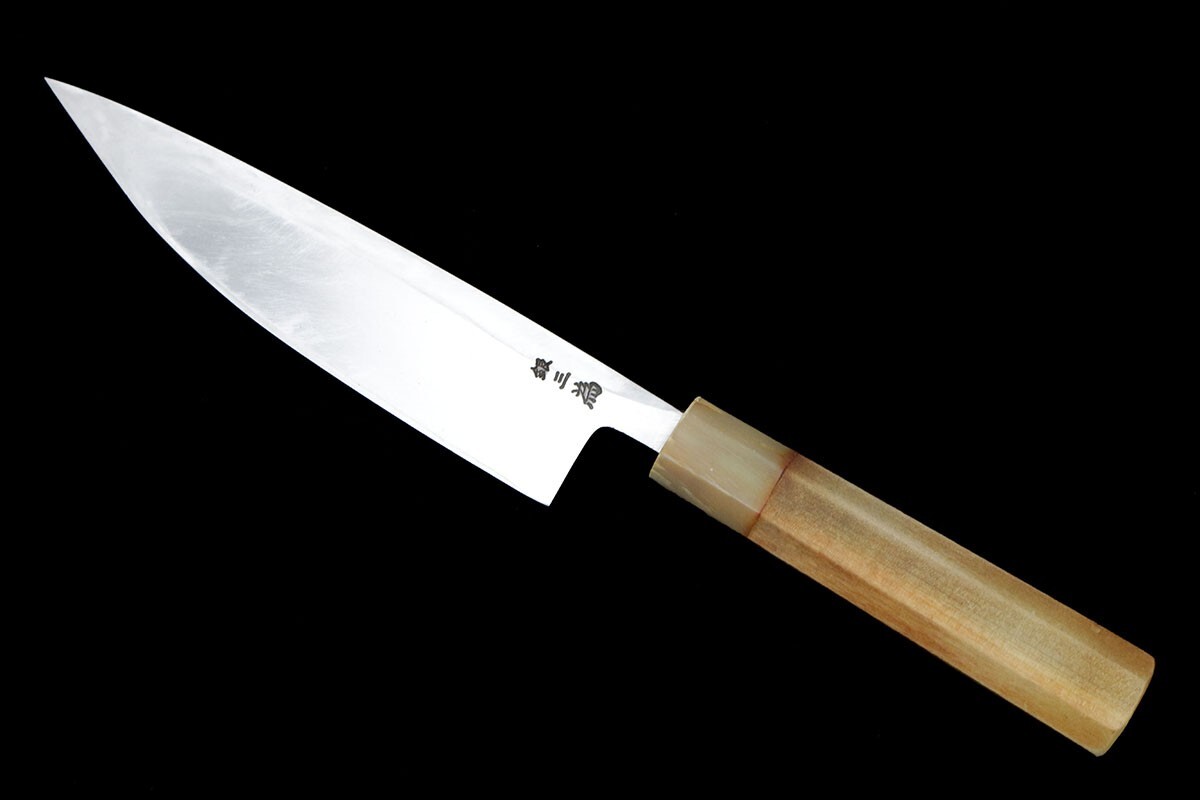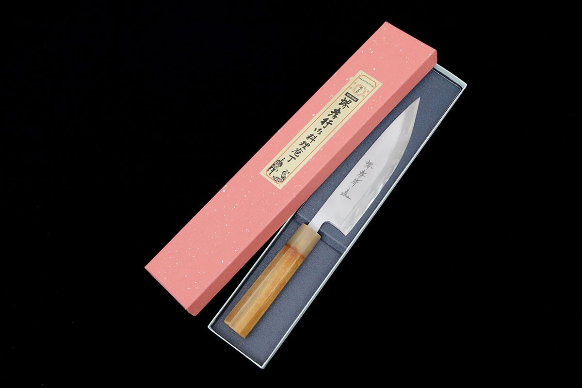 並品|堺孝行 出刃包丁 七寸 銀三 朴柄 箱付 KN02-B1761-2L2C
