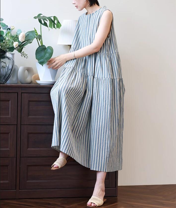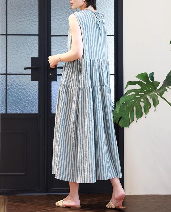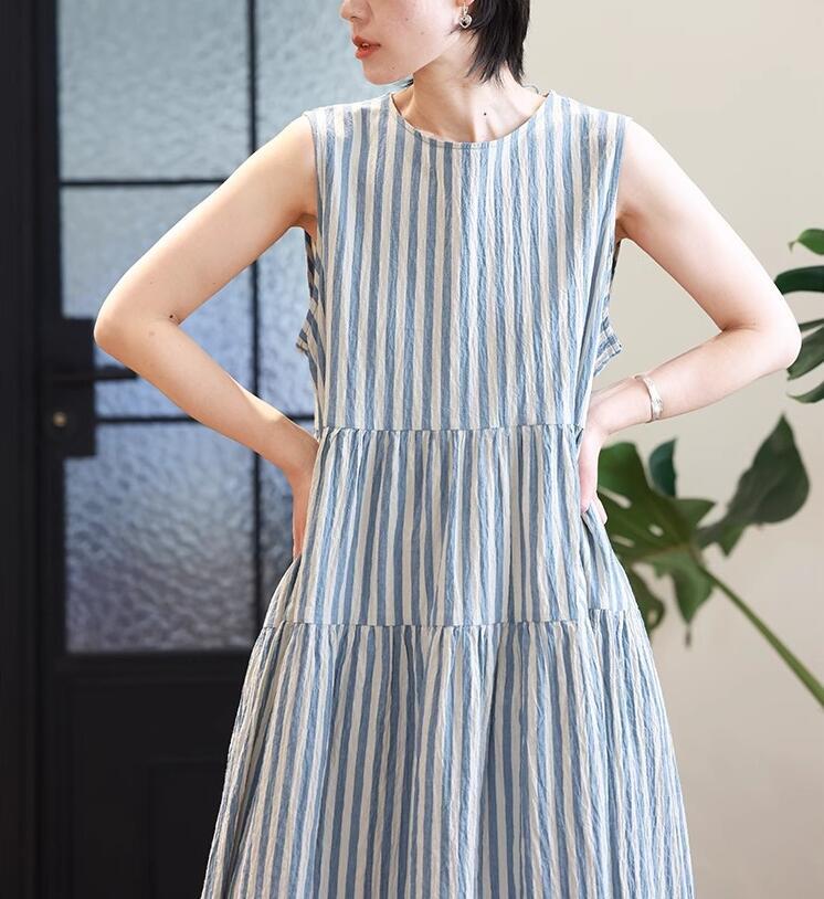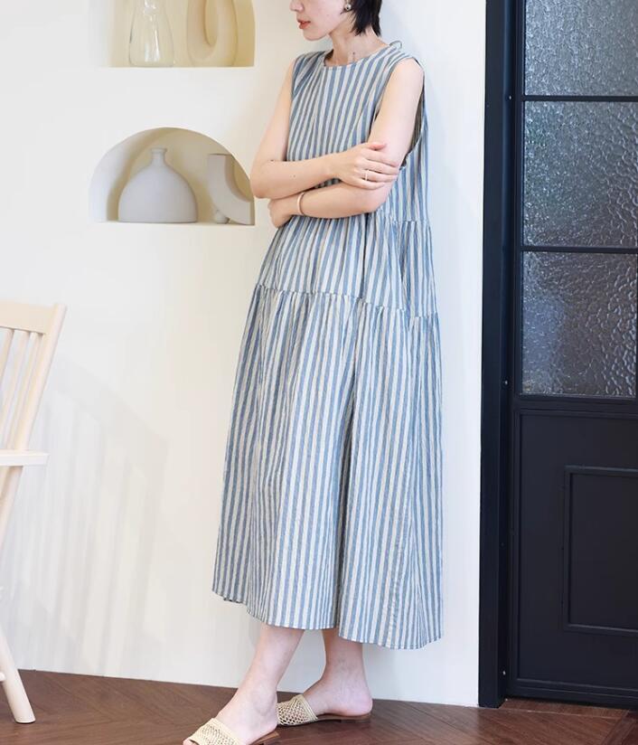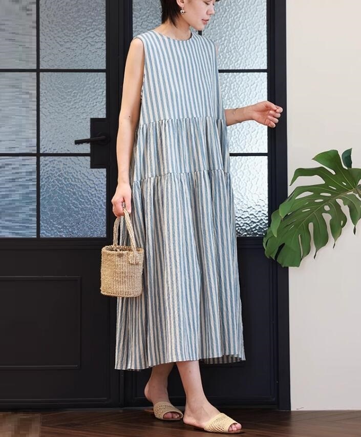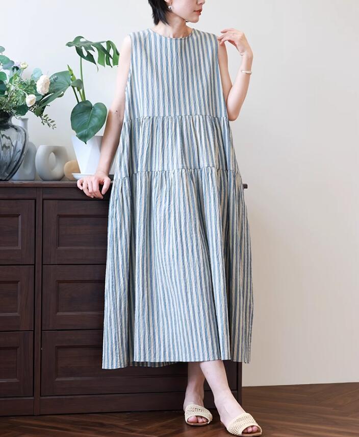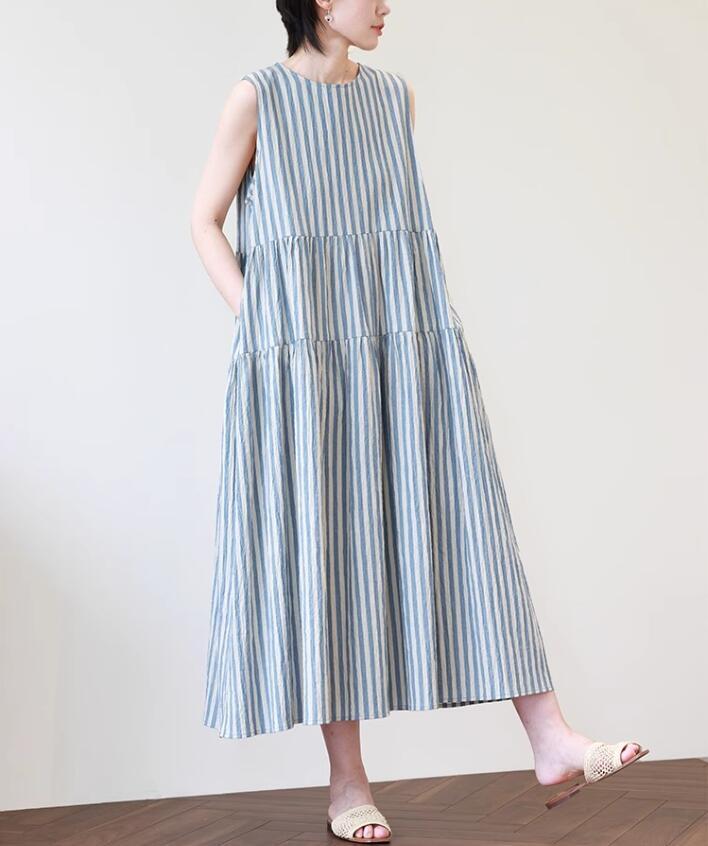 新入荷~ワンピース ロング丈 きれいめ ワンピース ボーダー柄 可愛い ナチュラル 大きいサイズ ノースリーブ ロングワンピース マキシ丈