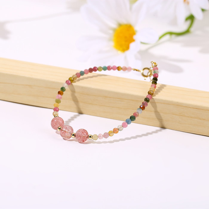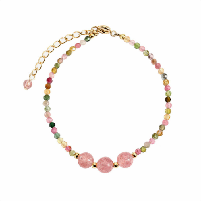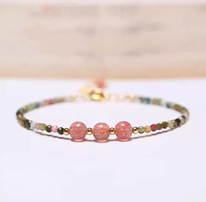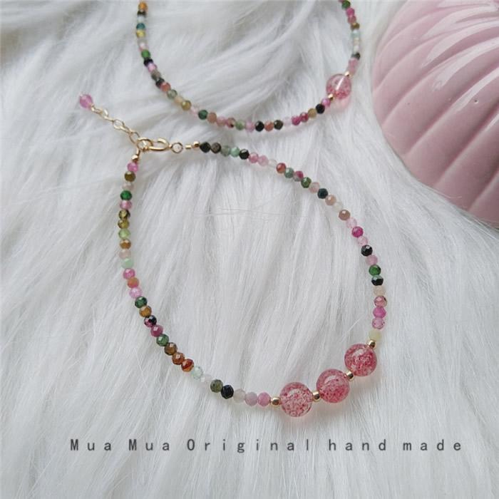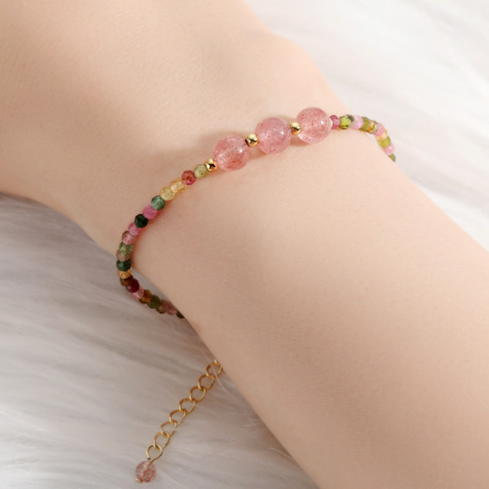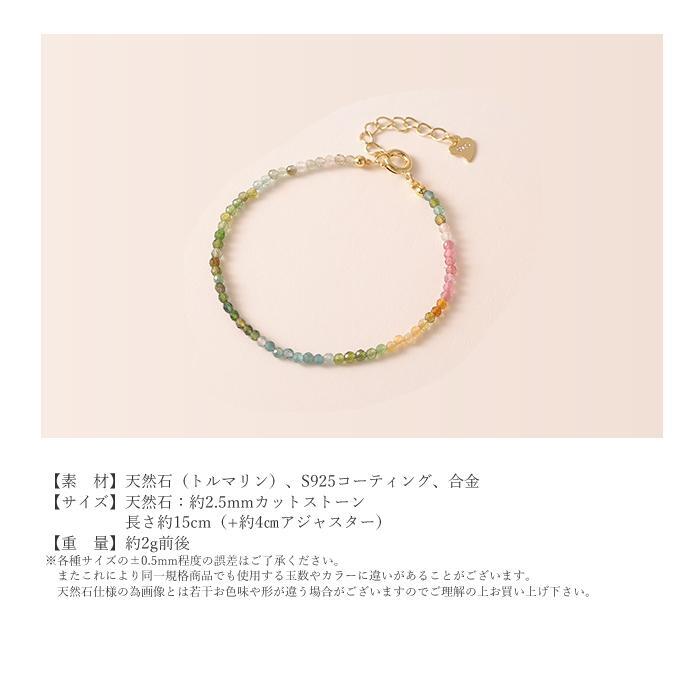 商品説明 | 2.5mmの虹色カラーのトルマリン天然石の華奢で繊細なブレスレットです♪ トルマリンは心身を癒すヒーリング効果が高いとされ、マイナスイオンを発生させる特性から空間の浄化や心身のストレス緩和を促すとされています。 また、非常にポジティブなエネルギーで持ち主本来の能力や人間的魅力を開花させて活力と勇気を与える効果もあるといわれています。 【素 材】天然石(トルマリン)、S925コーティング、合金