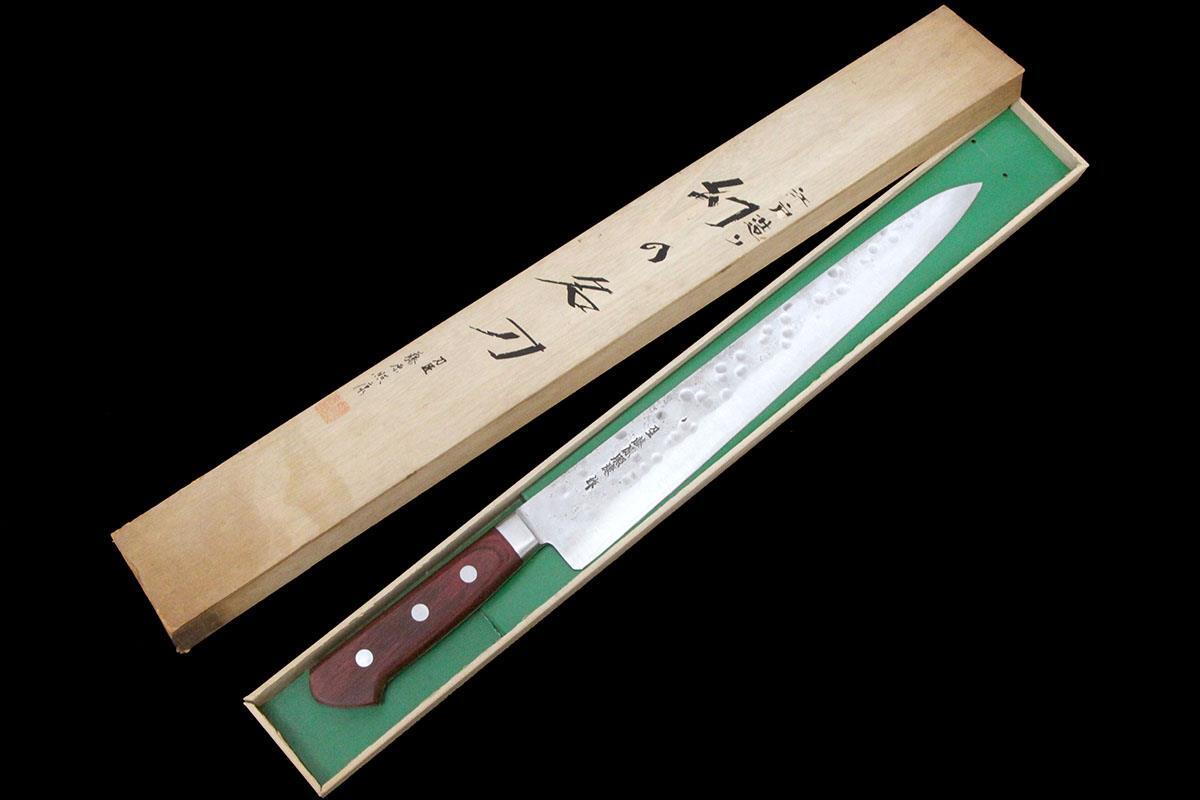 藤原照康 幻の名刀 筋引包丁 300mm 鍔付き柄 箱付