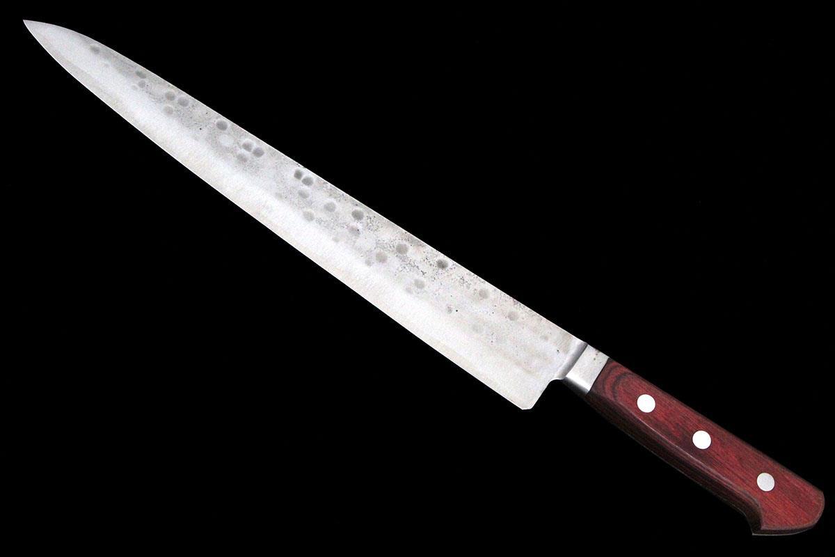 未使用品|藤原照康 幻の名刀 筋引包丁 300mm 鍔付き柄 箱付 KN02-A10374-2L4