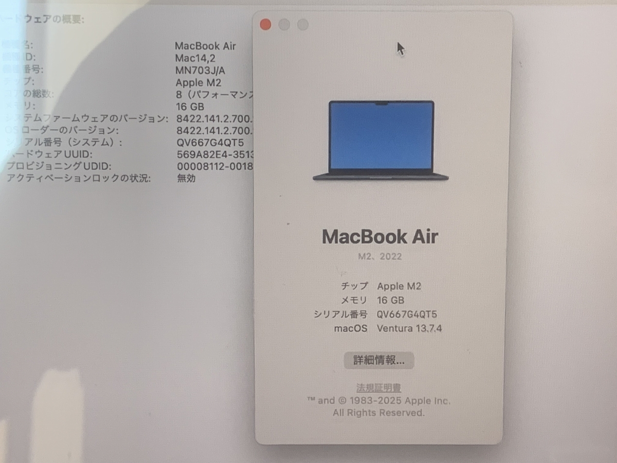 OSシステム :  Ventura 13.7.4/Windows 11 Pro
