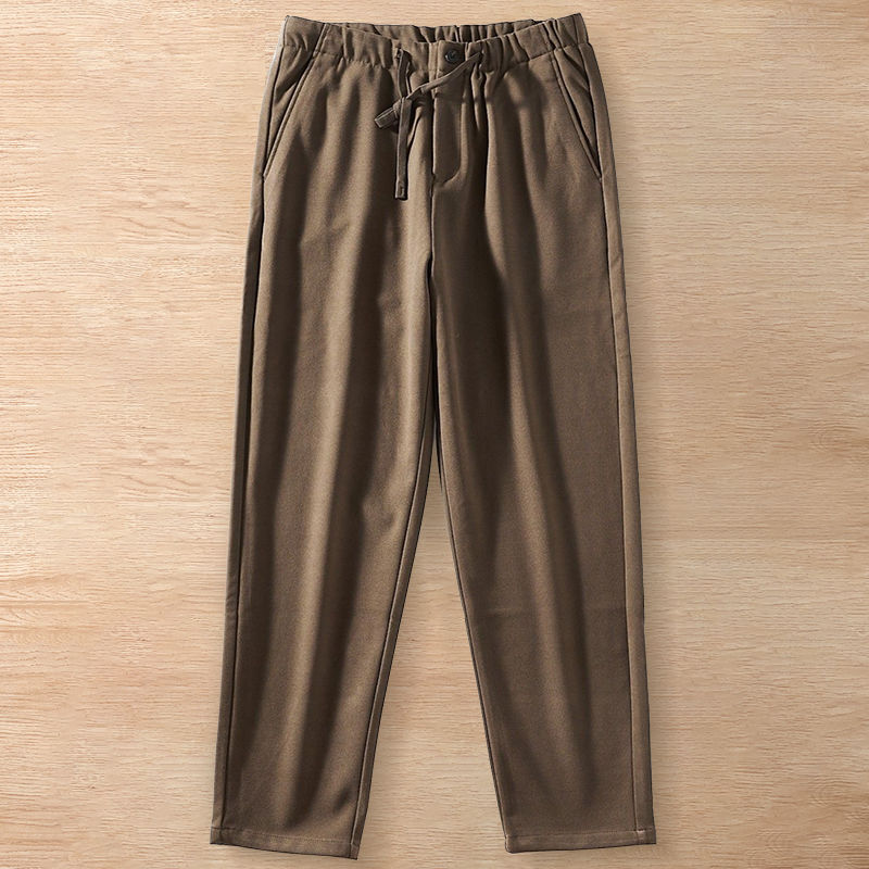 Y6364-L カーキ 新品 ウール混 カシミア イージーパンツ スラックス テーパード 秋冬 暖かい メンズ ビジネス ウエストゴム カジュアル
