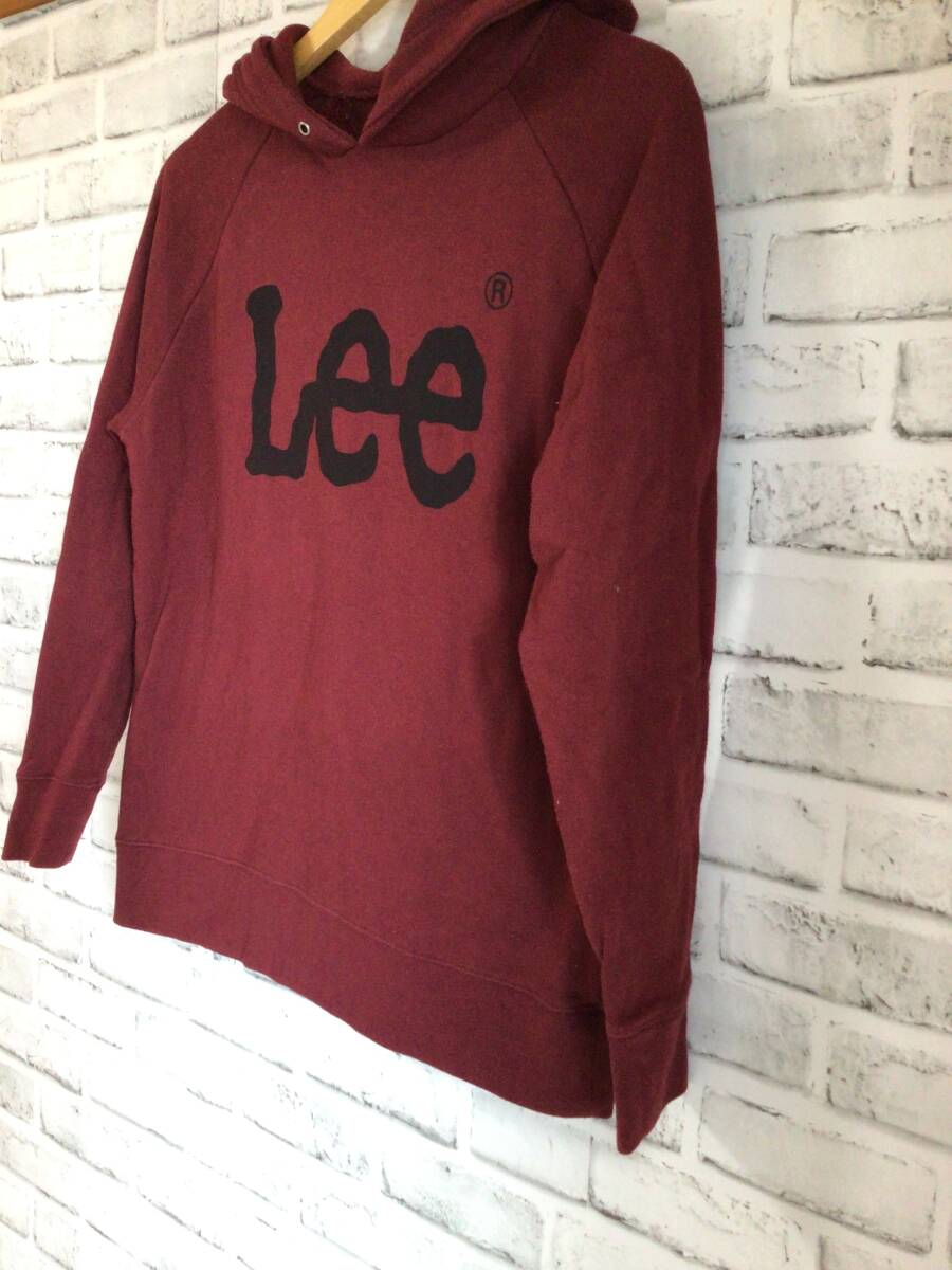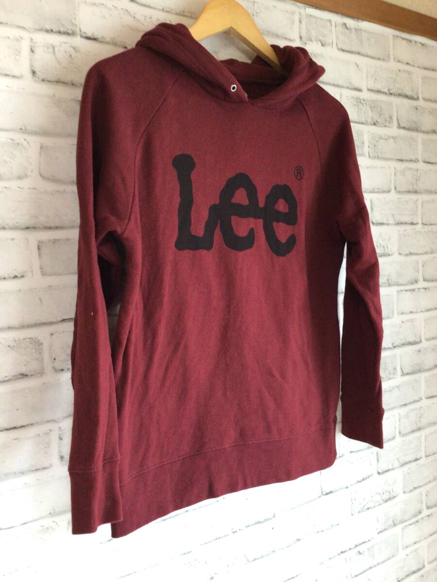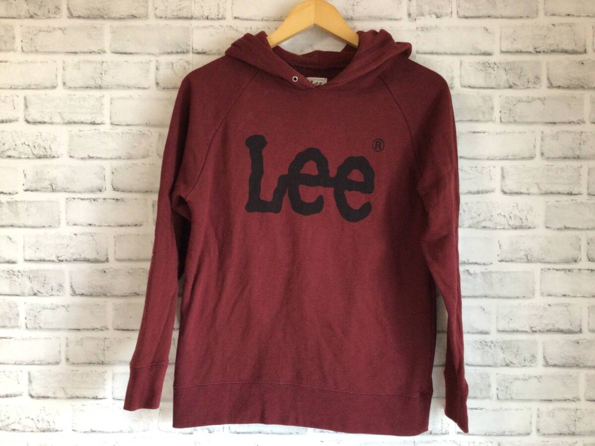W297 Lee/リー パーカー レディース Lサイズ プルオーバー スウェット レッド ロゴプリント シンプル 古着 現状品
