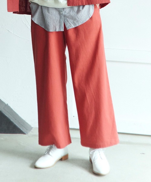 キーワード:パンツ レディース ウエストゴム ストレート ハイウエスト フルレングス ワイドパンツ 無地