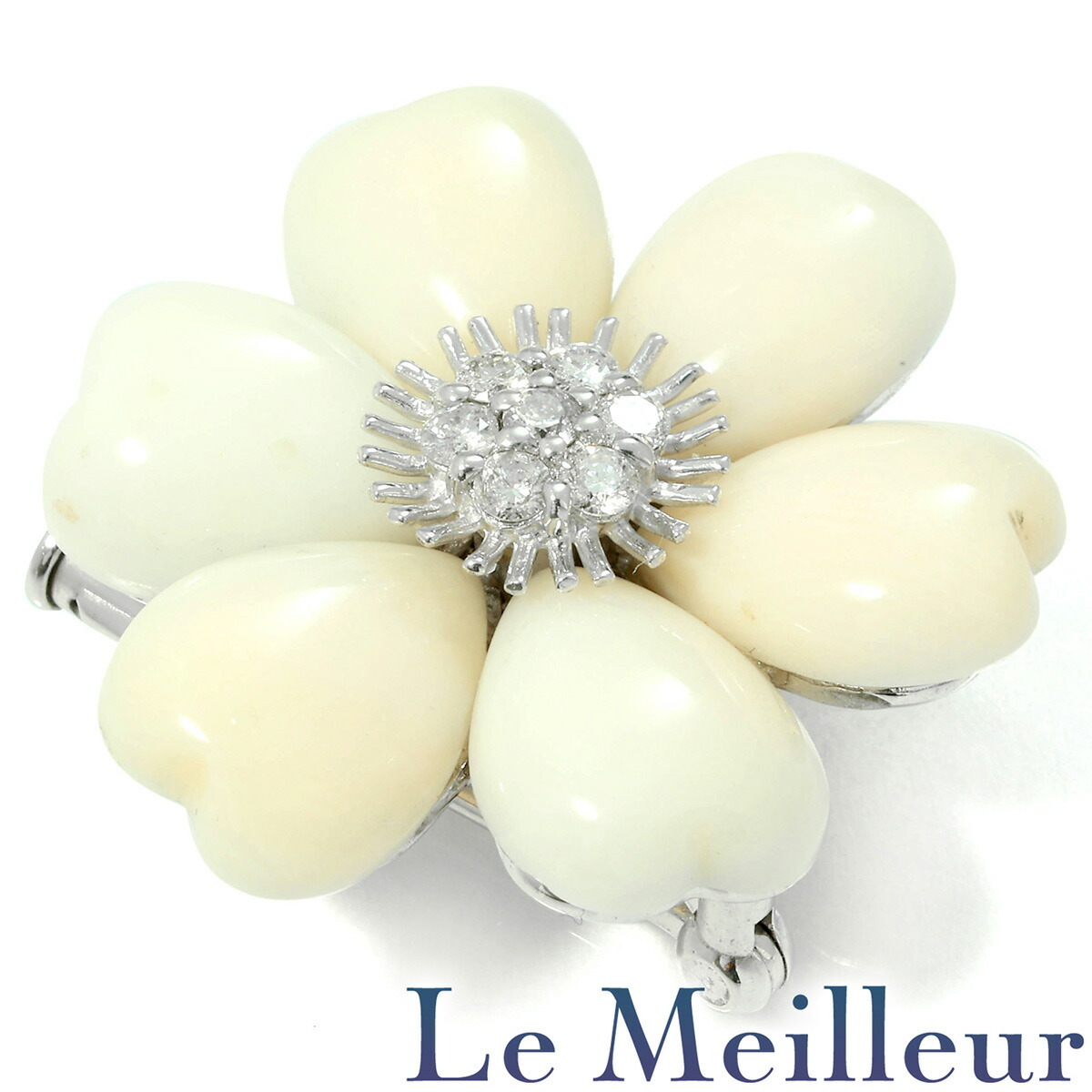 フォーマル パーティー セレモニー 天然珊瑚 上品 花 Flower キラキラ 2WAY キルトピン ハートシェイプドカボションカット 18金 WG 20代 30代 40代 50代 60代 70代 USED ユーズド 中古 リユース ペンダントトップ LEP5348