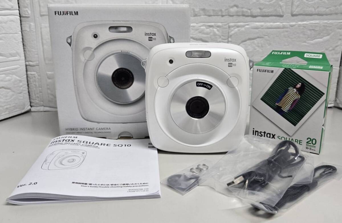 FUJIFILM 富士フィルム インスタント カメラ チェキ intax SQUARE SQ10 通電動作確認済 箱取説付 未使用フィルム付 中古 現状品 画像の通り