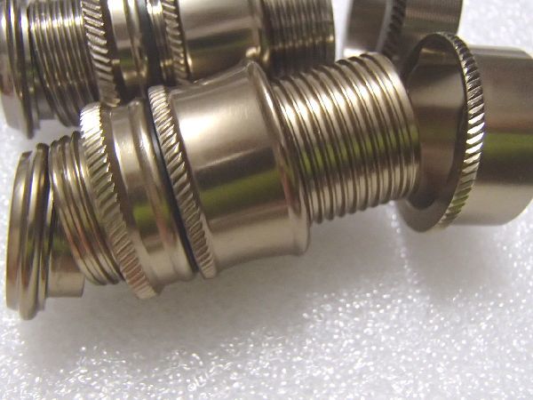 スクリュー部外径16.3mm 最大外径22mm。内径約14.0ミリ。エンドキャップは接着されていません。グリップ下端に埋め込まれるリールシート上端の金具の直径 20.1ミリ。 #0~5のロッドにどうぞ 。アルミ製で軽い、13g。strubleのU34は、28g。