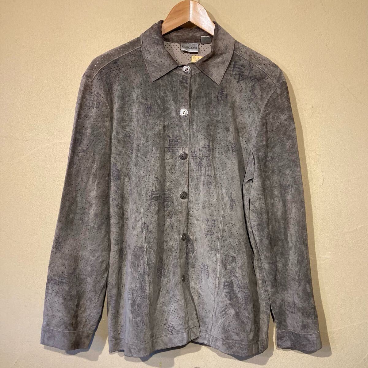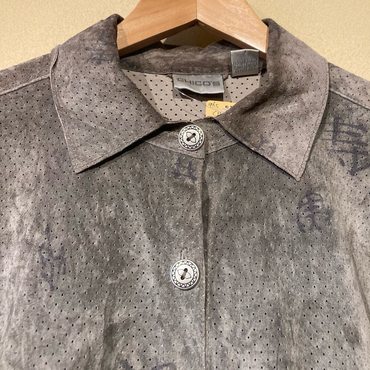 ★送料込み★ 90's ヴィンテージ 古着 CHICO'S パンチングレザー スウェード シャツ ジャケット 漢字