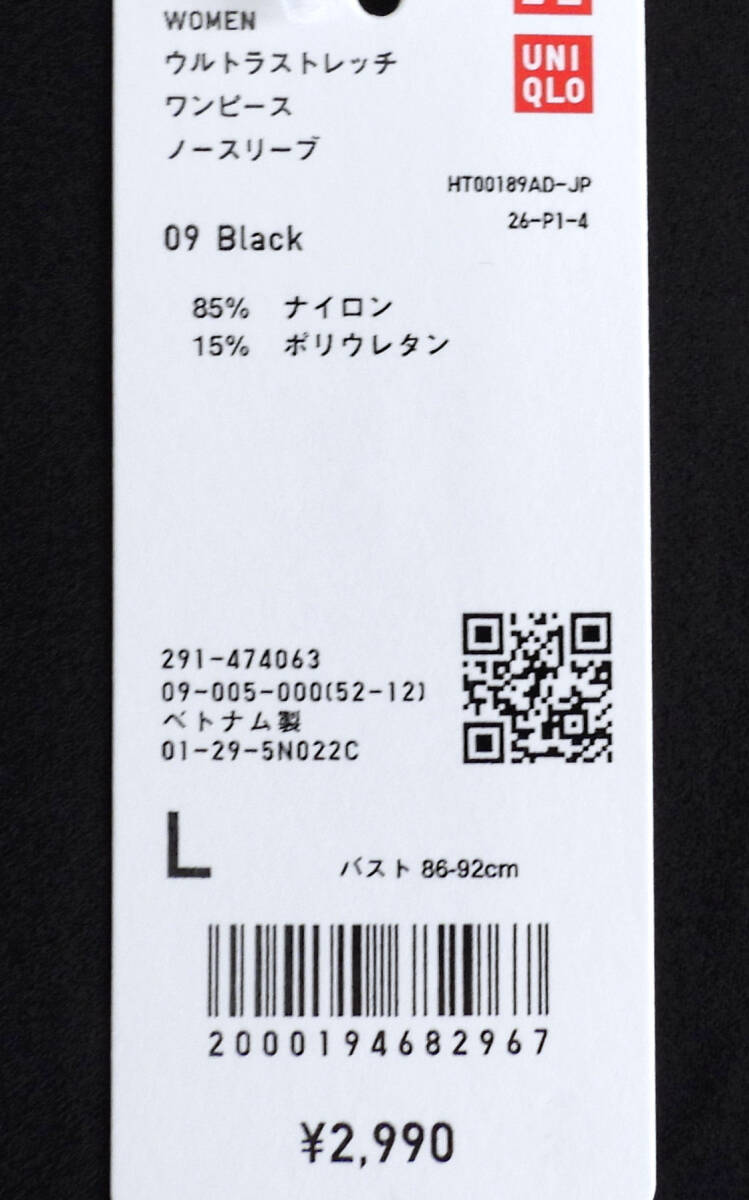 ユニクロ UNIQLO ウルトラストレッチワンピース ノースリーブ WOMEN ブラック Lサイズ【新品未使用】