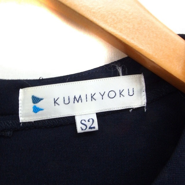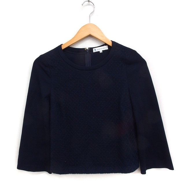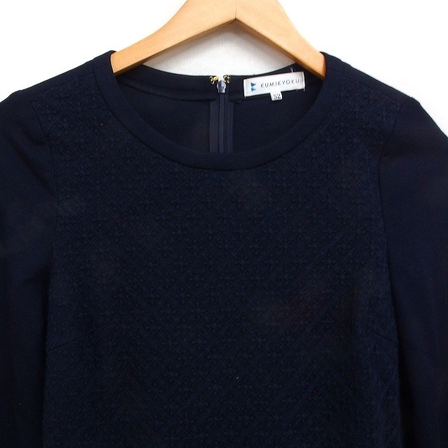 クミキョク 組曲 KUMIKYOKU 切替 レース ブラウス 丸首 長袖 S2 ネイビー 紺 /FT34 レディース