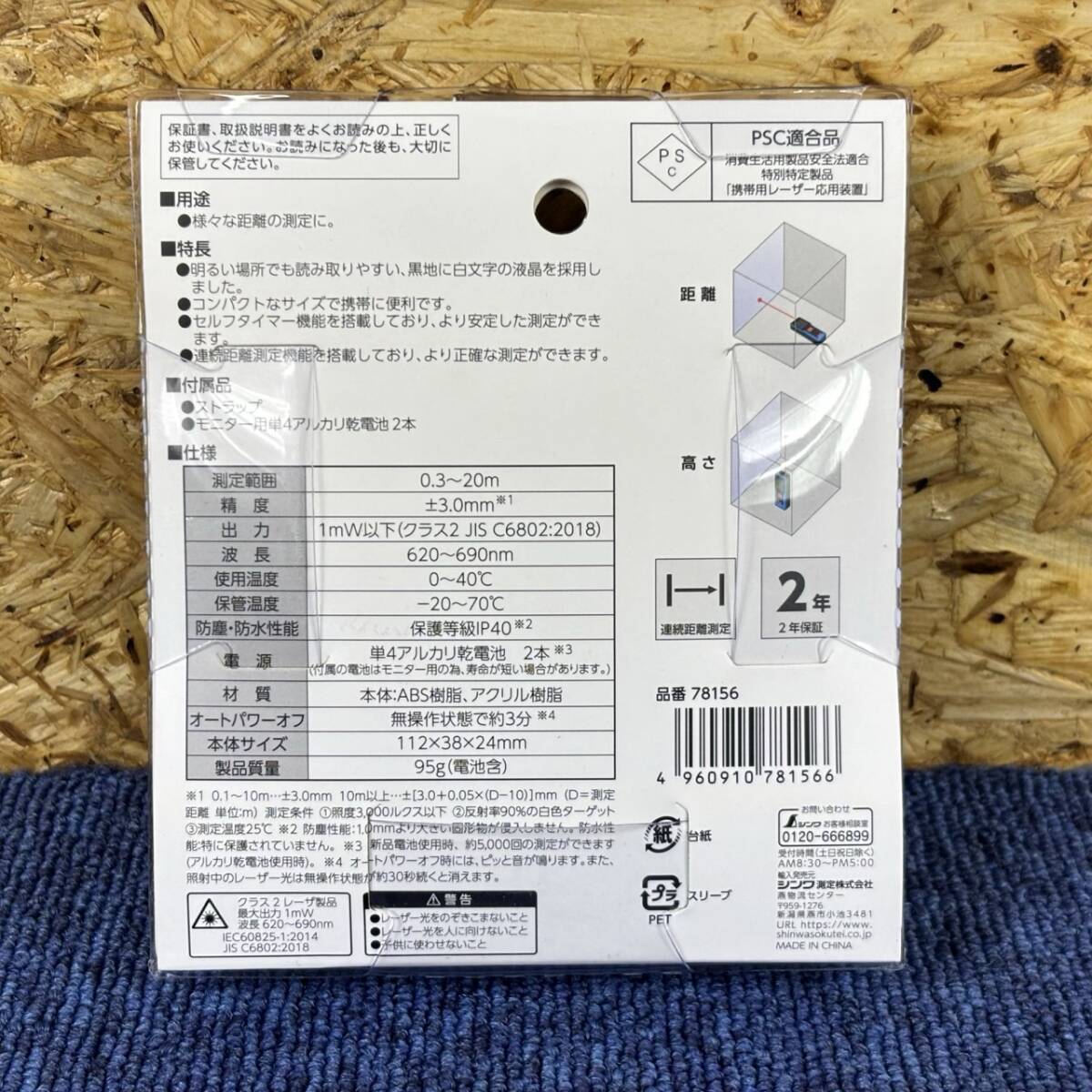 【新品未使用品】シンワ レーザー距離計 L-MeasureBK 20 品番78156 距離測定器 測量 ハンドツール 大工道具 A1732