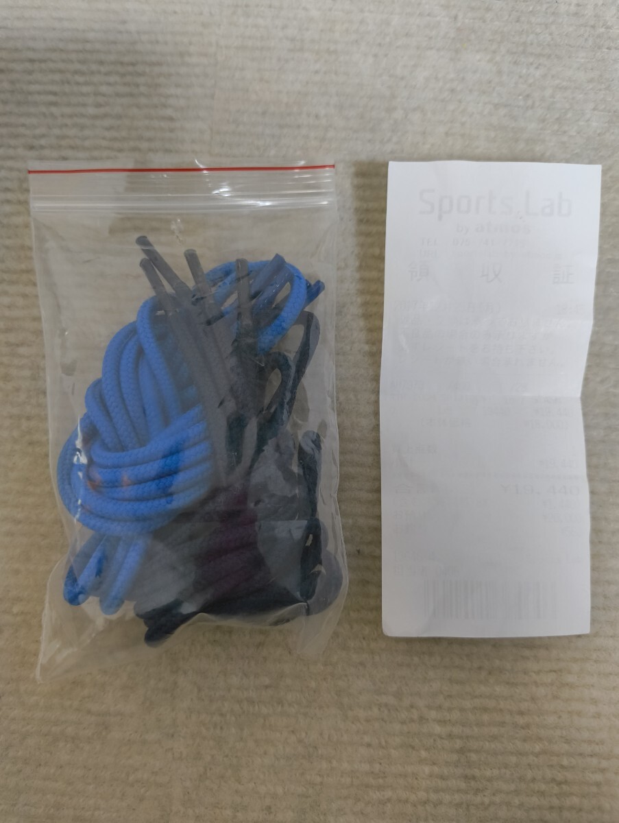 外箱なし。替え紐と購入当時のレシート(印刷は消えかけています)があります。