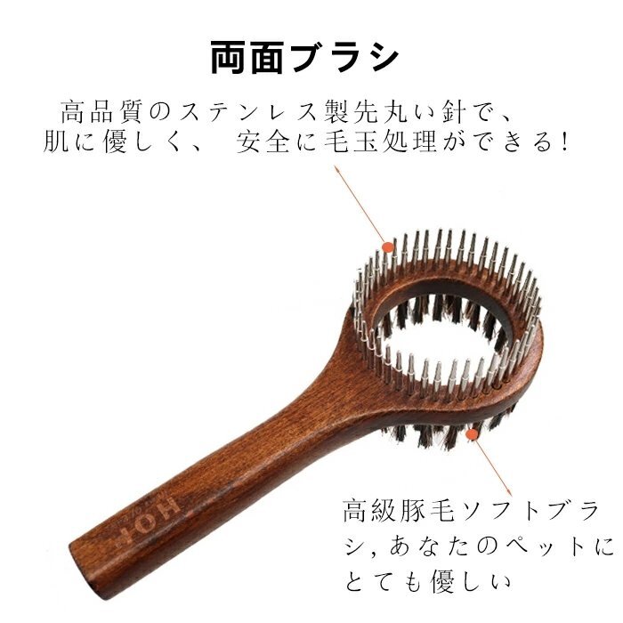 ペットブラシ ボディーブラシ シャワーブラシ ペット用品 ブラッシング 犬 ブラッシング 両面タイプ ステンレス 木製 両面タイプ ☆1点