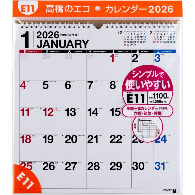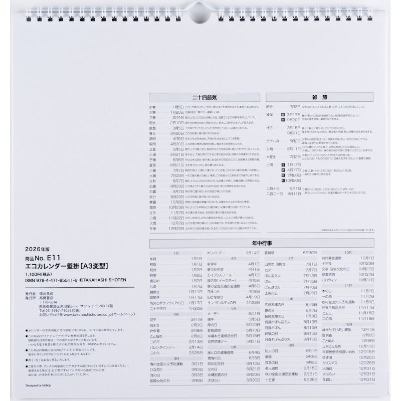 人気No.1の見やすさと使いやすさ。程よい大きさで、スマートなスクエアタイプ。2年分を一覧できる年間カレンダーが付いているので、長期計画の立案もしっかりサポートしてくれます。エコで地球にやさしい、シンプルな壁掛タイプのカレンダー[A3変型サイズ]