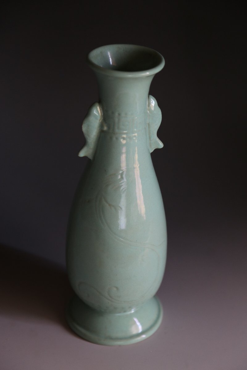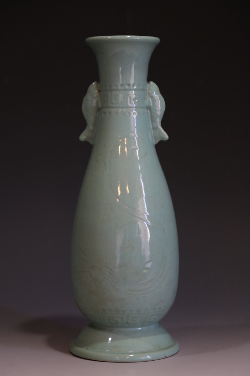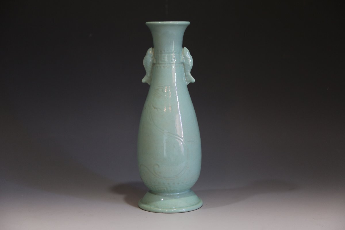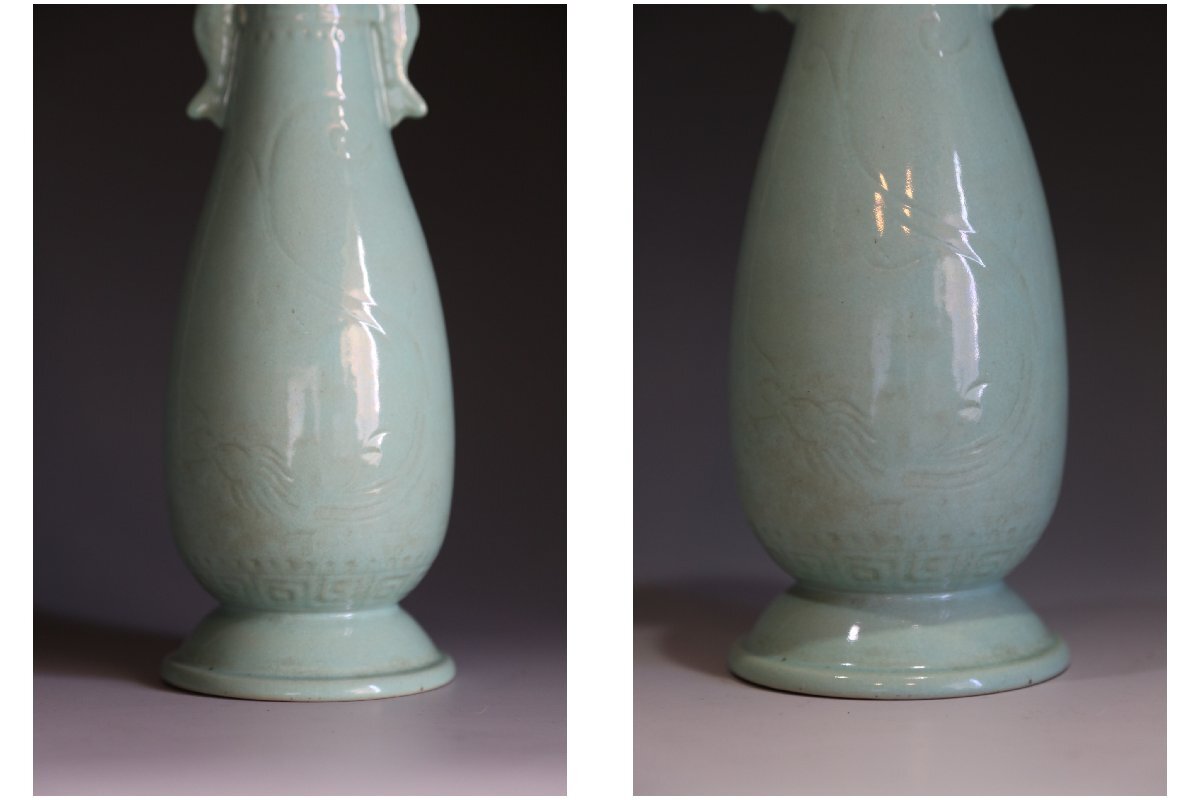 ★★★ 萬古焼 魚耳雨龍紋 青磁 花生け 花入れ 花器 花瓶 ★★★ 67
