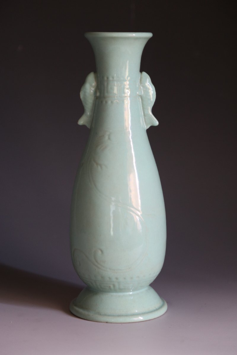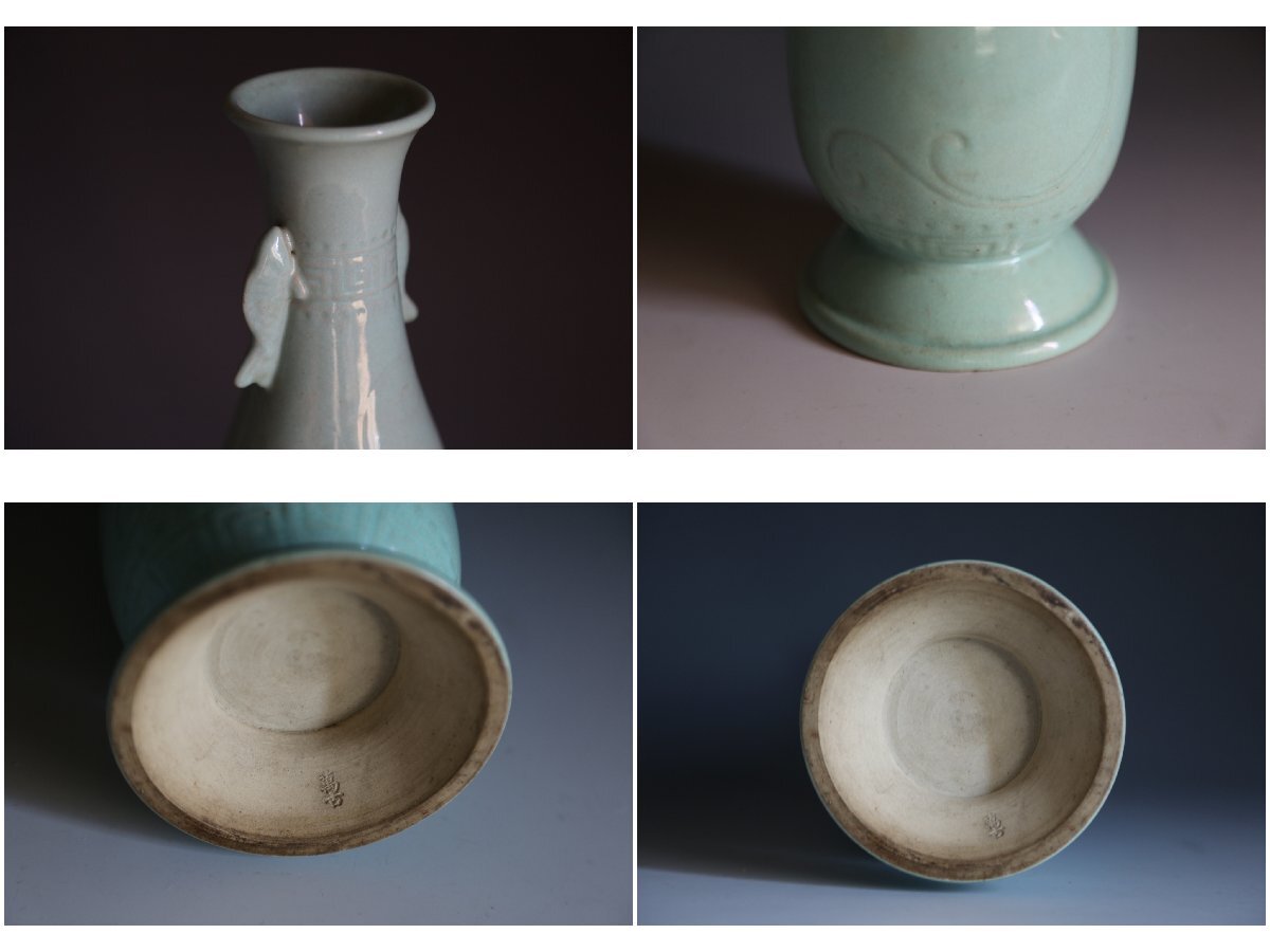 ★★★ 萬古焼 魚耳雨龍紋 青磁 花生け 花入れ 花器 花瓶 ★★★
