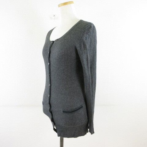 ルール RULe ニットカーディガン 長袖 リブ シルク混 グレー S *T107 レディース