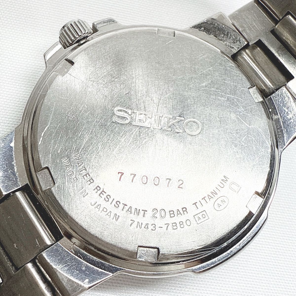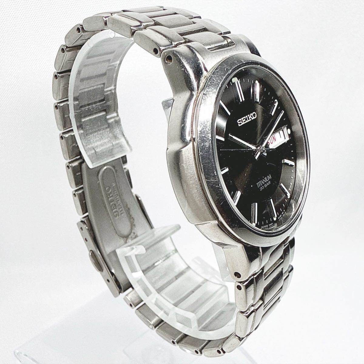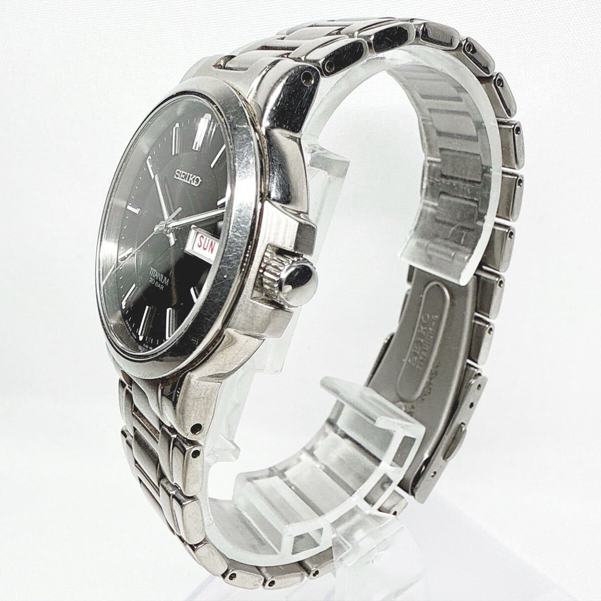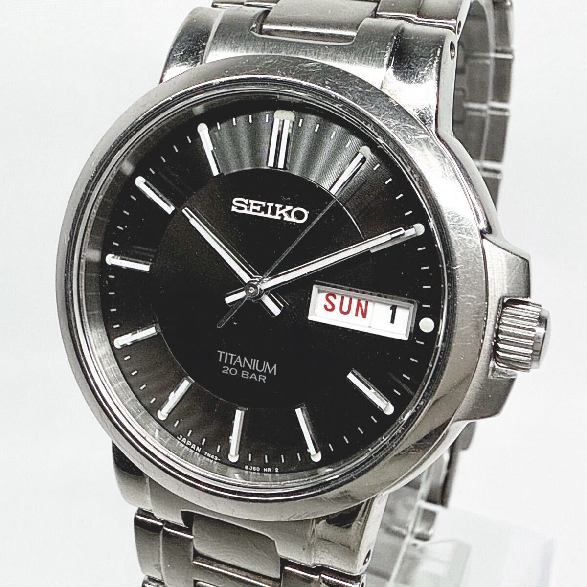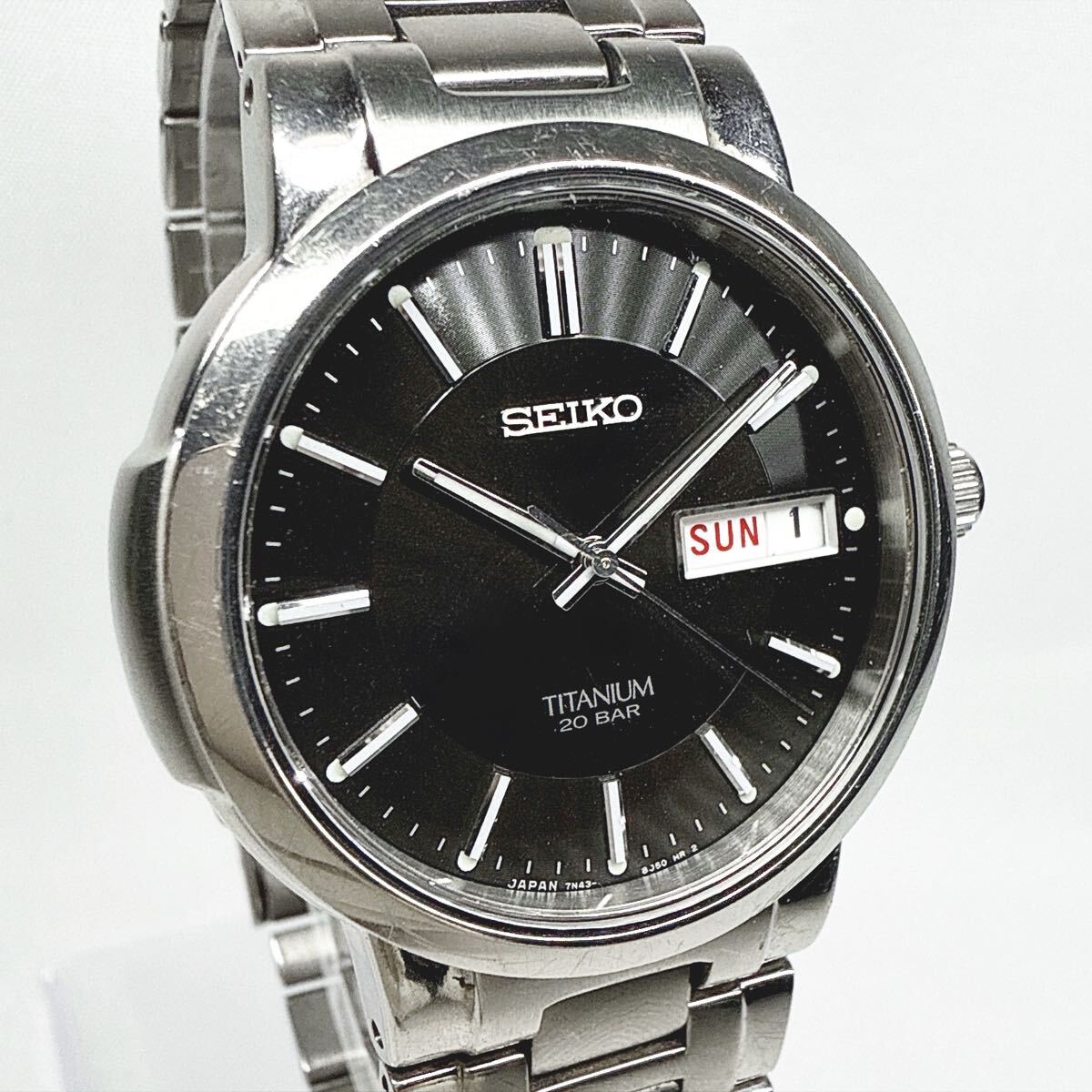 SEIKO セイコー TITANIUM チタン 7N43-7B80 クオーツ デイデイト ラウンド ブラック文字盤 ベルト純正 1997年製 ヴィンテージ メンズ