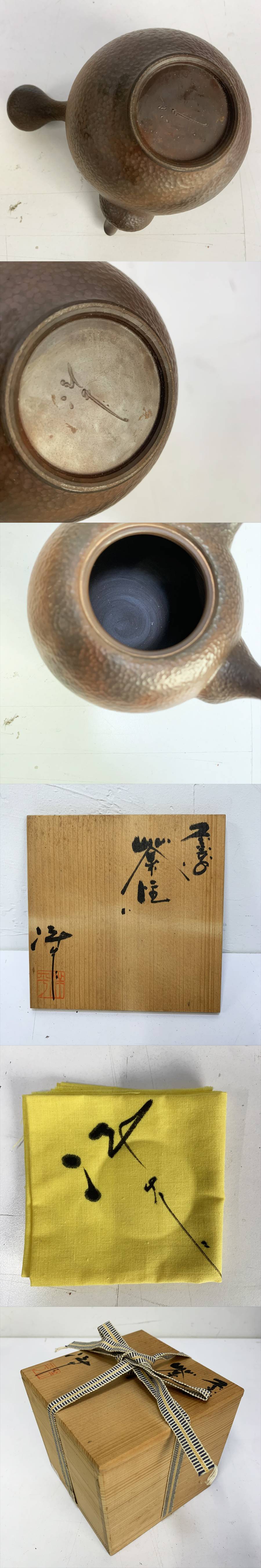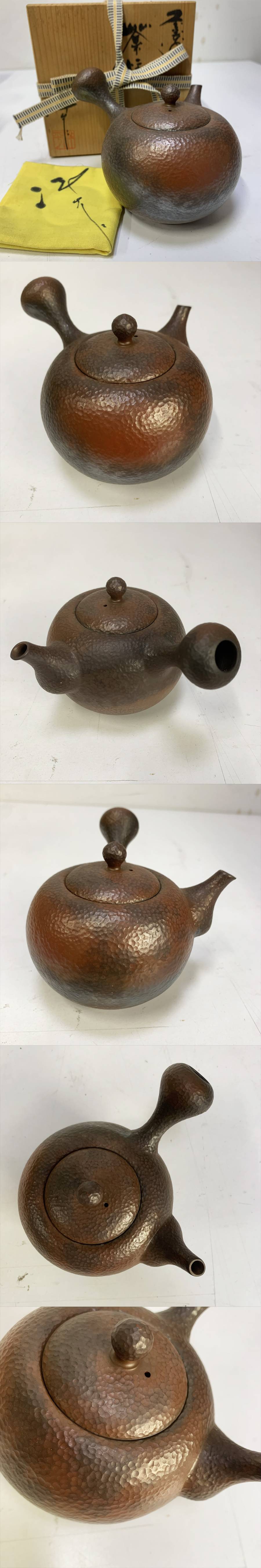 常滑名工 小西洋平 常滑焼 朱泥窯変槌目模様横手急須 共箱 茶注 煎茶道具 煎茶器 約14cm