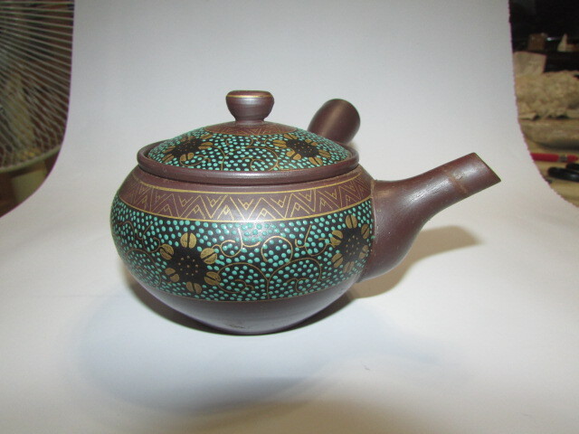 即決商品( 旧家・蔵出し )昭和レトロ( 宝水印有り・味わいのある急須・色絵花模様 ) 普段使いに